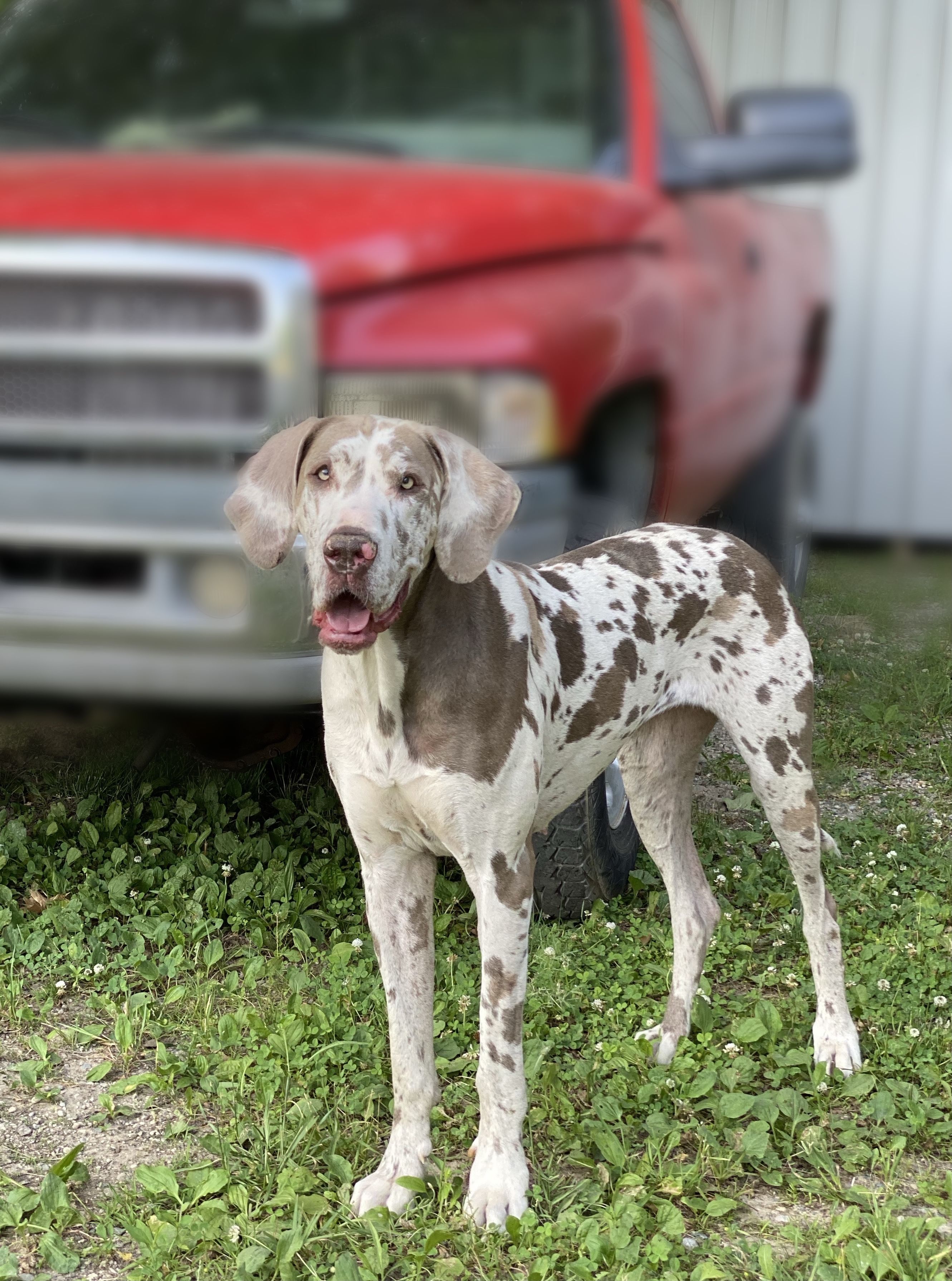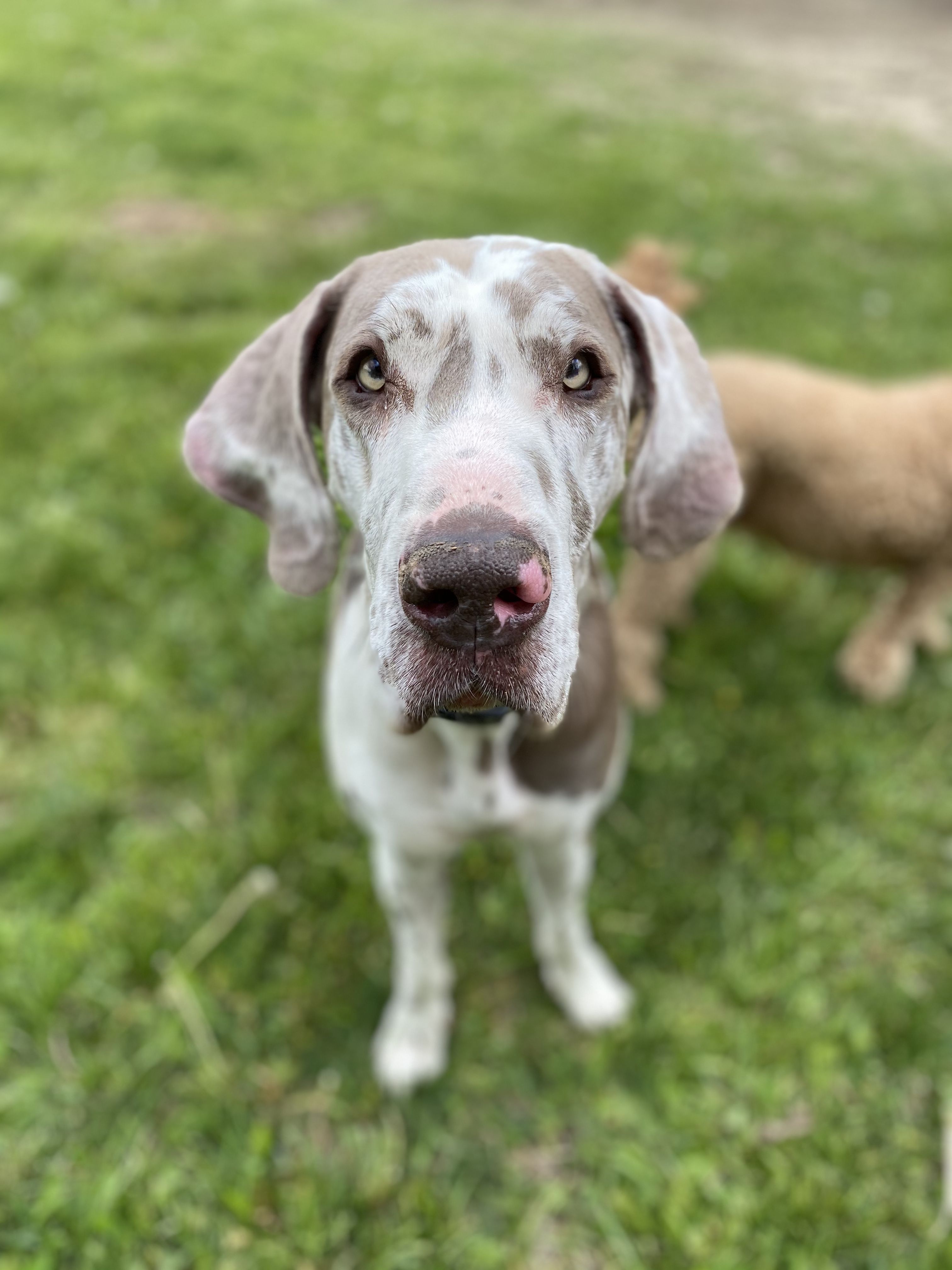 Velma is a female Great Dane. Carefully selected as a great representative of her breed, Nicole decided to make her part of their program. Nicole has passed Good Dog’s screening process, which involved a review of their breeding practices, environment, and the mental and physical health of their dogs.