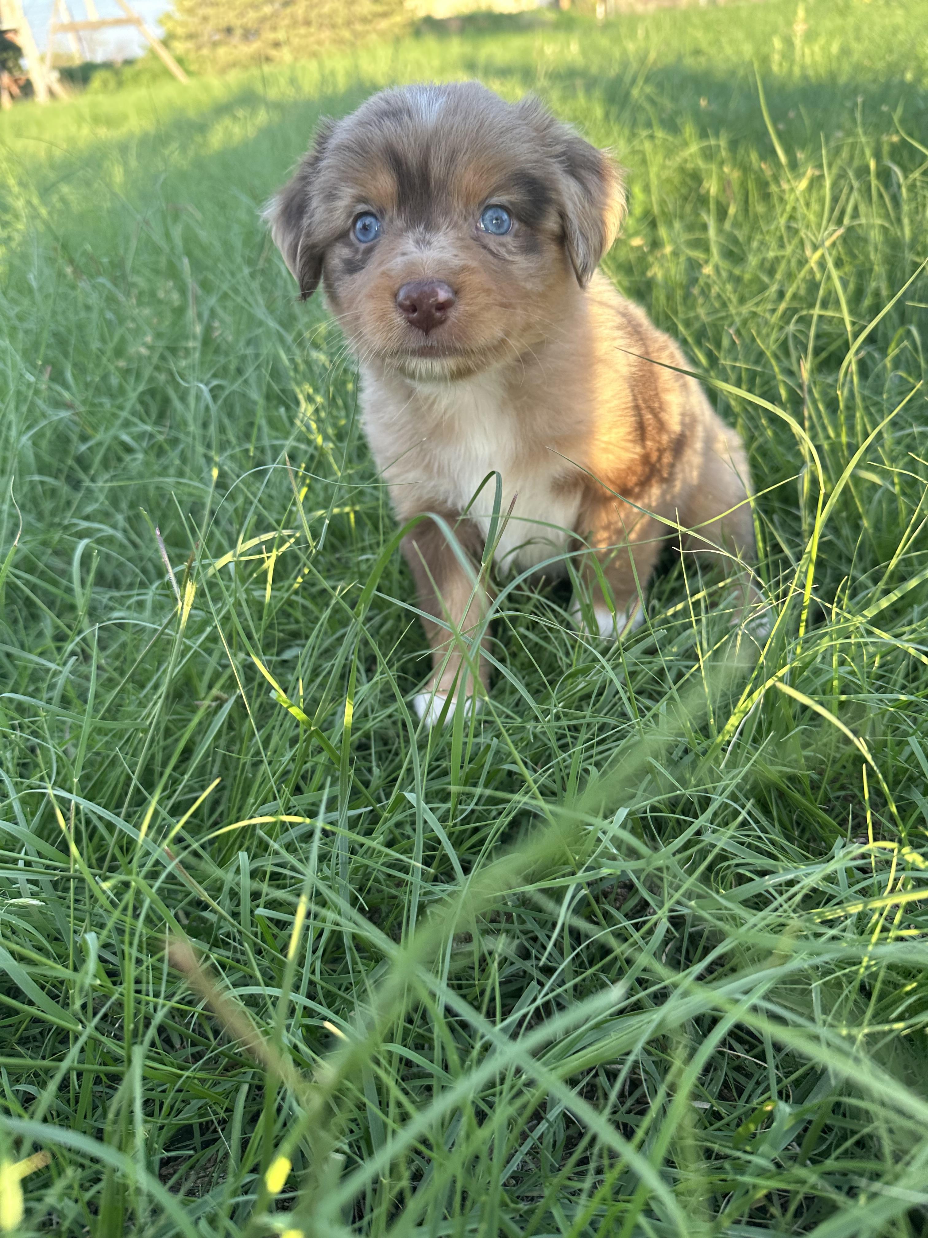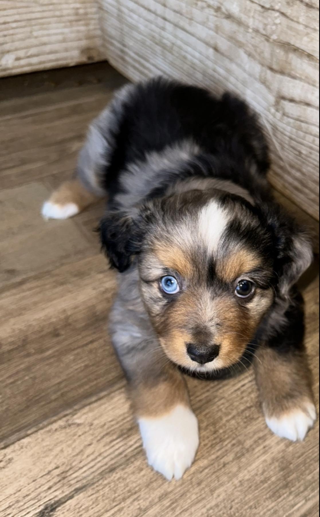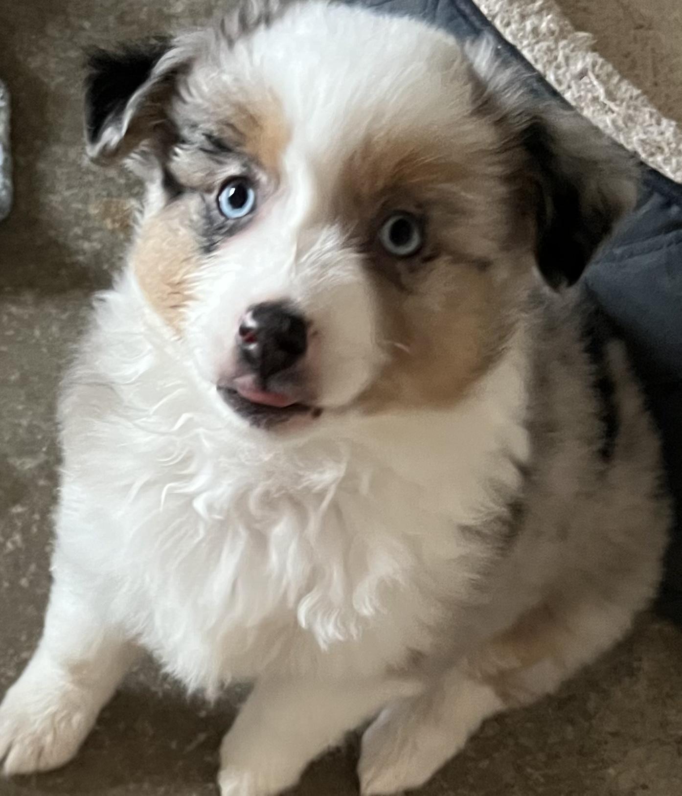Our Miniature Australian Shepherd puppies are blue merle. Toy Australian Shepherd puppies are blue merle. Colors will vary depending on the parent dogs.