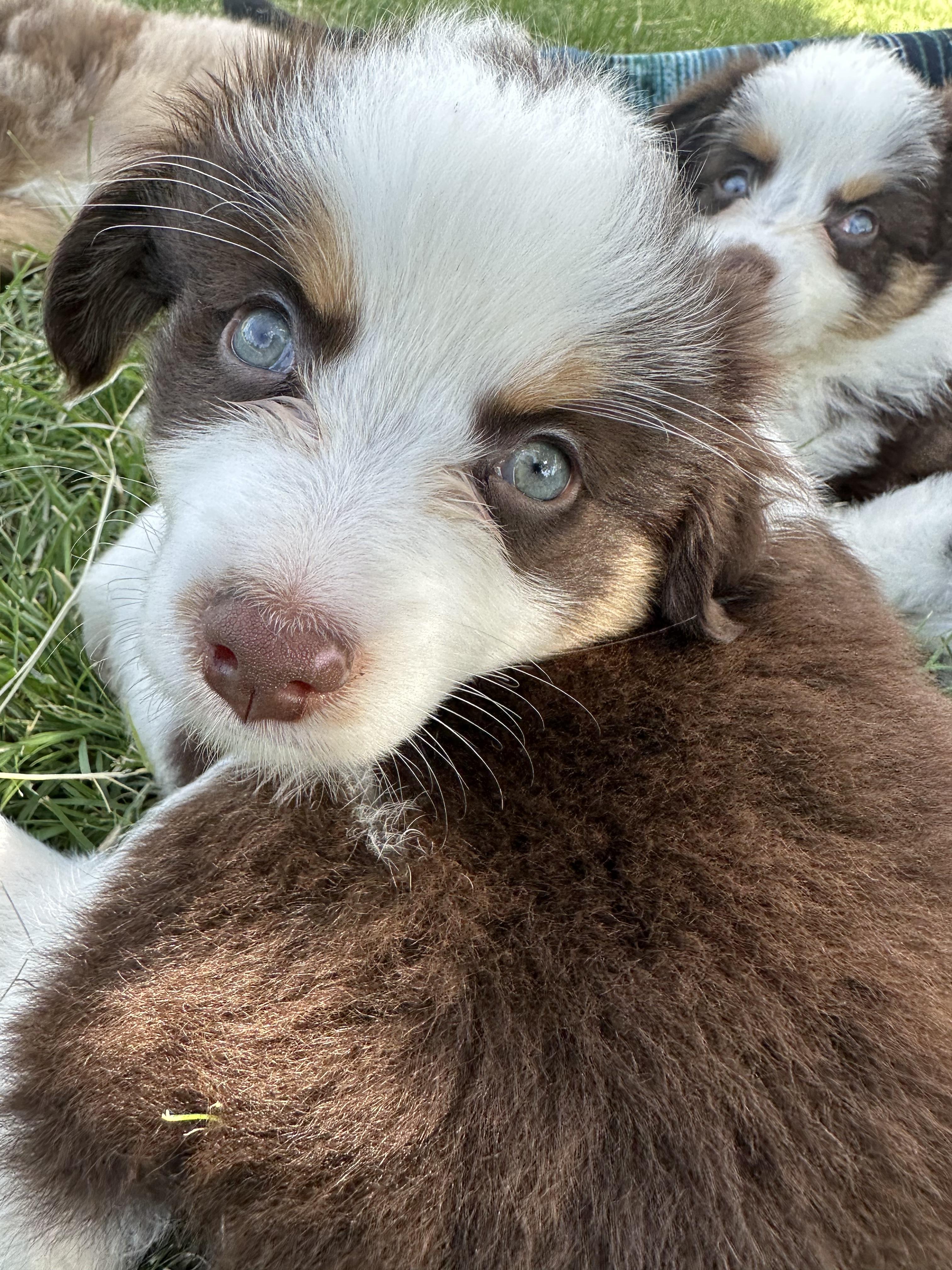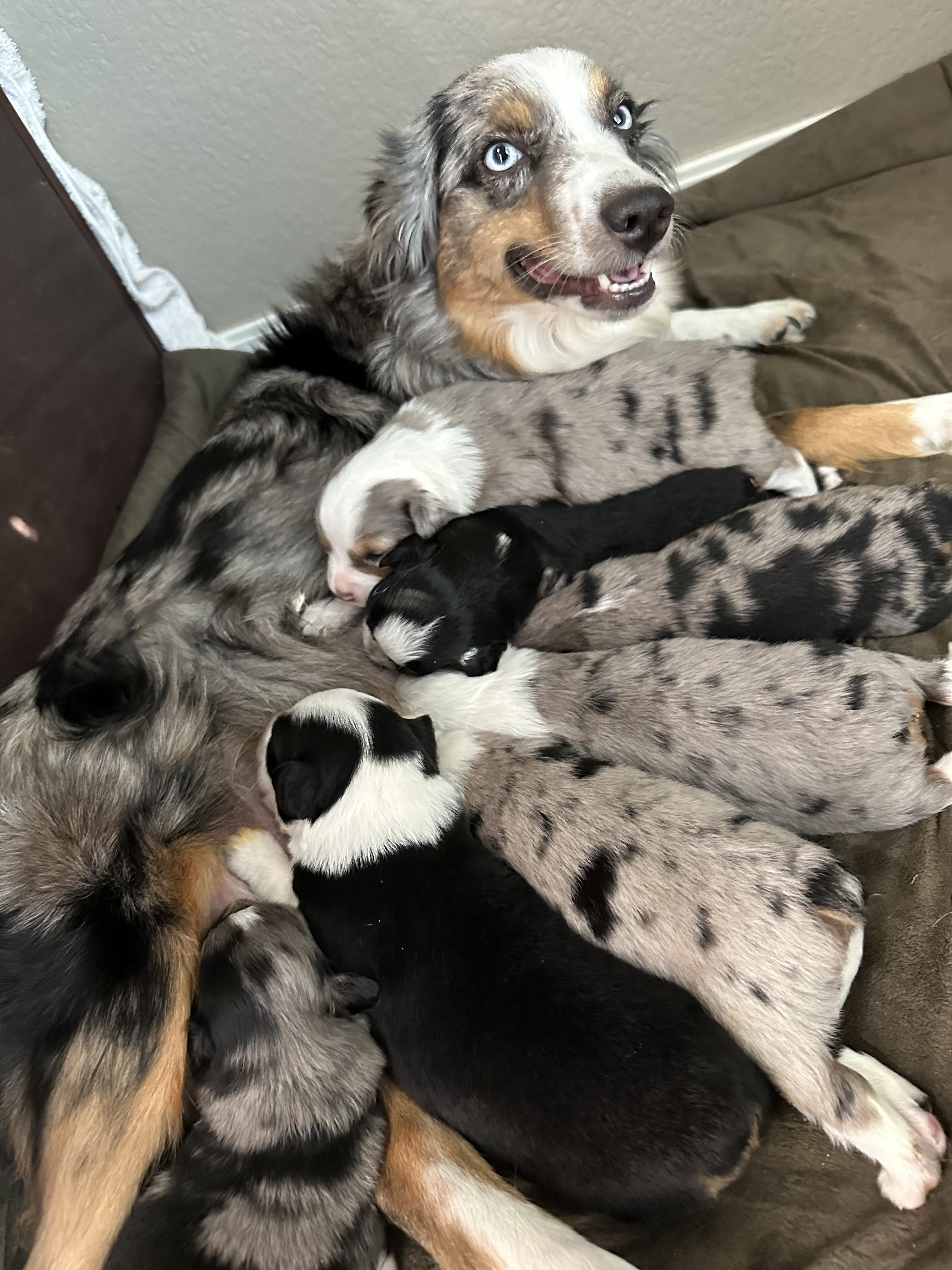I'm Zayna H., the breeder behind Duclops Ranch Aussies located in Amarillo, TX. We are a small homestead in the panhandle of Texas. We have chickens and other large livestock, so naturally we chose mini Australian shepherds to help out. They are extremely loyal and intelligent dogs. We put a lot time and love into our babies. Our dogs are all are tested with full genetic panels clear. ASDR registered. Strong BET lines. Puppies are played with and socialized daily. Raised around kids and cats. Puppies all come with their 1st round of shots and wormed and all go to well visit before heading to their forever home!