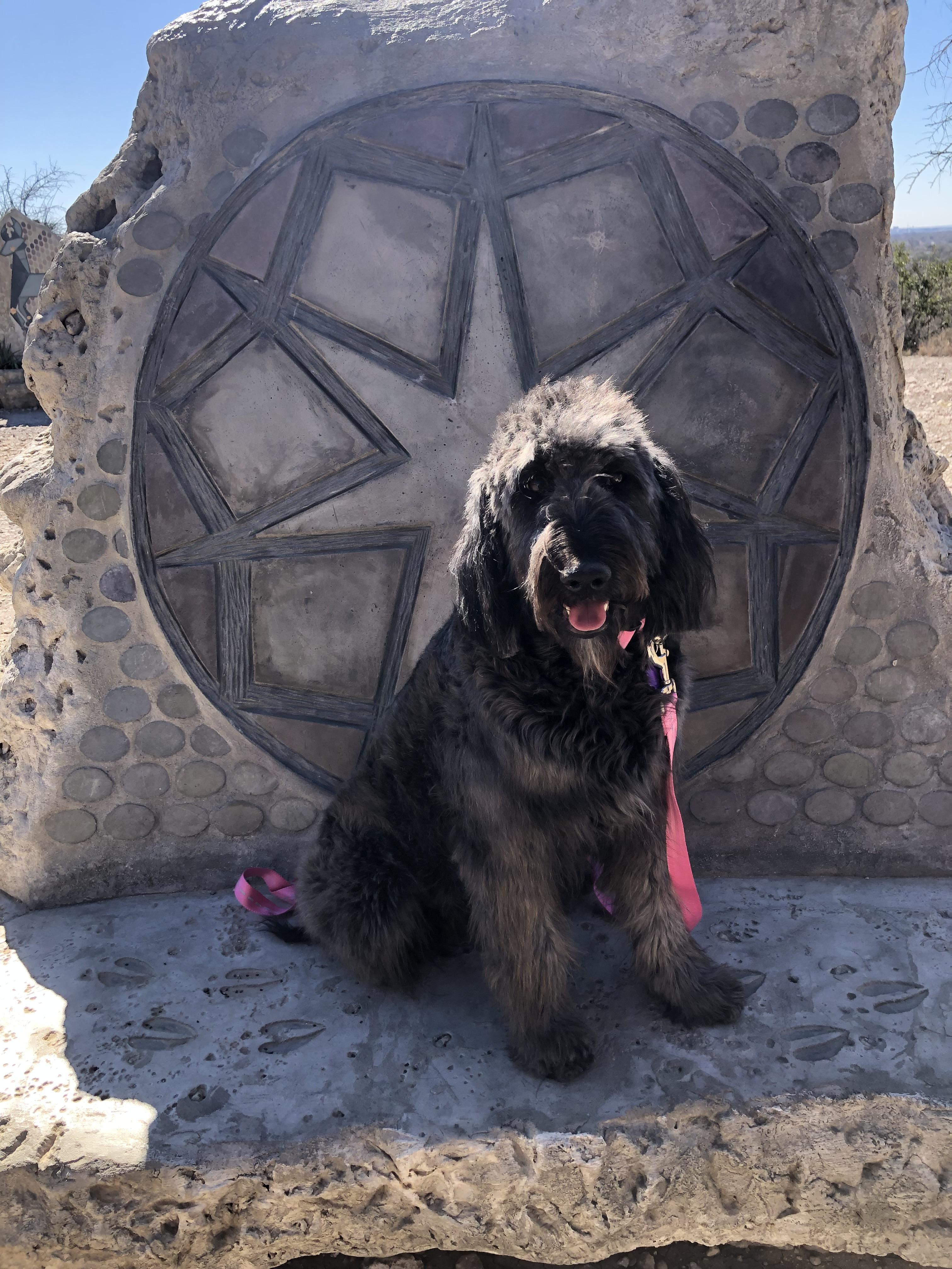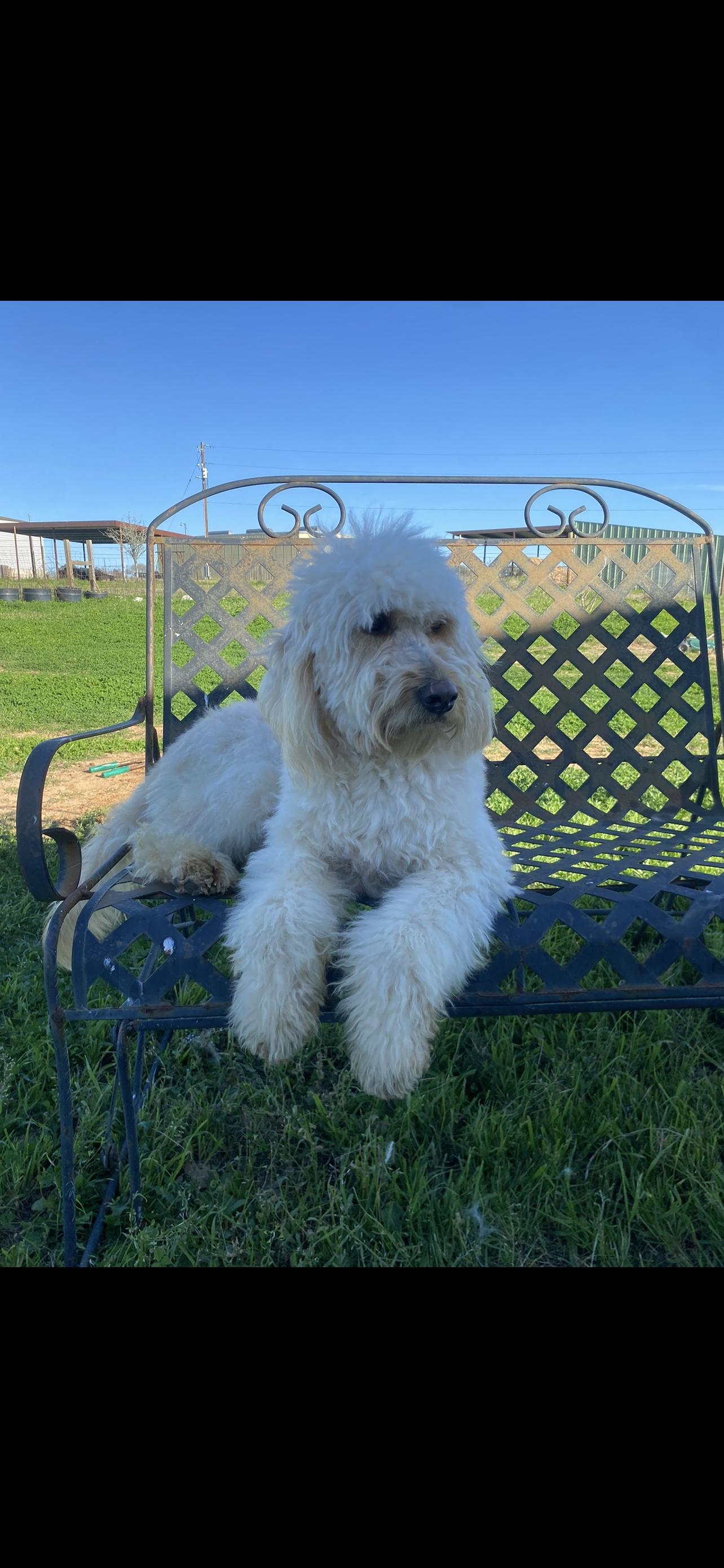 Lola is a medium size, sable Goldendoodle. She is eager to please and loves to be apart of our daily ranch work. She is super smart, loves hikes, and going out to eat with the family.