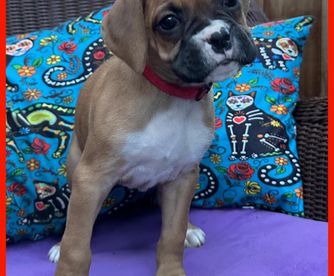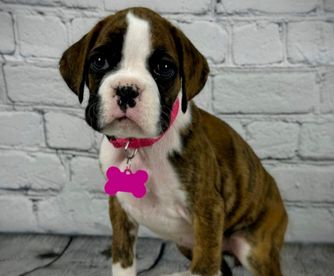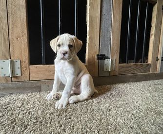 Our puppies include fawn, brindle, and white. Colors will vary depending on the parent dogs.