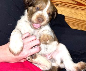 Paco is a male English Springer Spaniel. Carefully selected as a great representative of his breed, Jessica decided to make him part of their program. Jessica has passed Good Dog’s screening process, which involved a review of their breeding practices, environment, and the mental and physical health of their dogs.