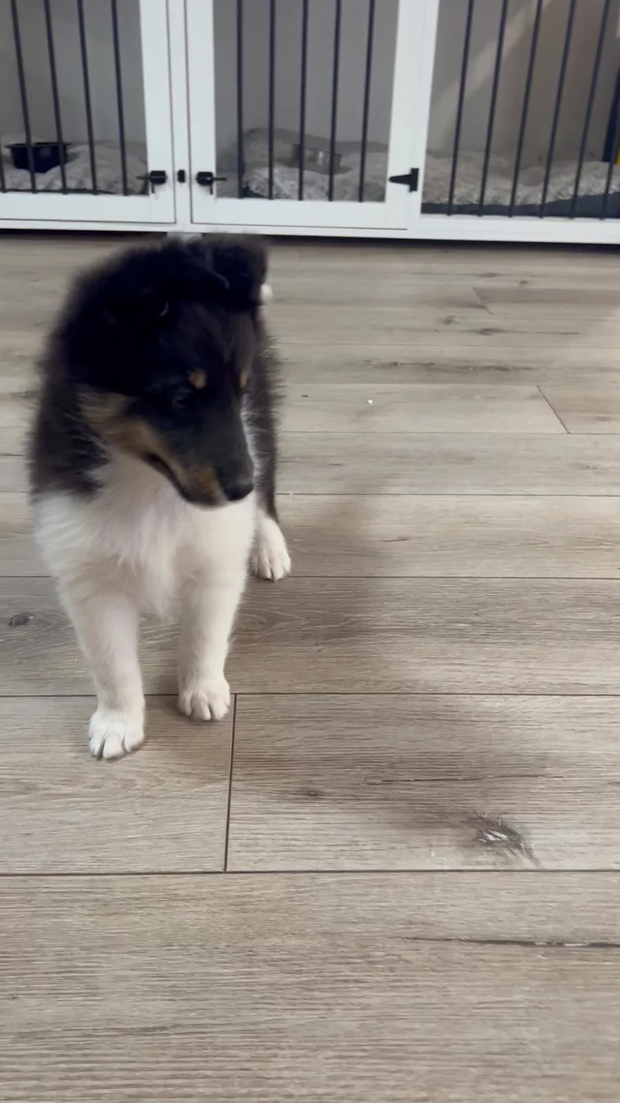 Our Shetland Sheepdog puppies are black and white. Collie puppies include blue merle and white, sable and white, black white and tan, blue merle white and tan, sable merle and white, sable merle, sable, and blue merle. Colors will vary depending on the parent dogs.