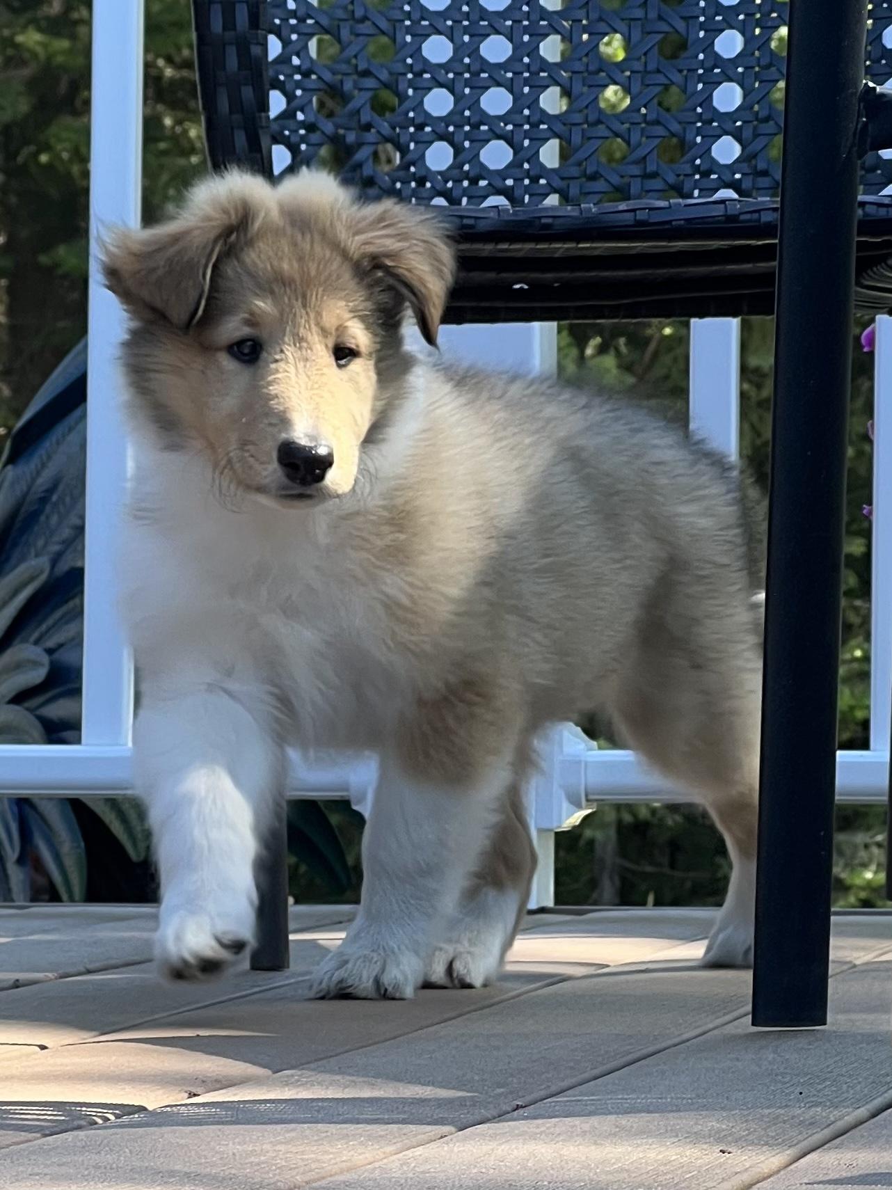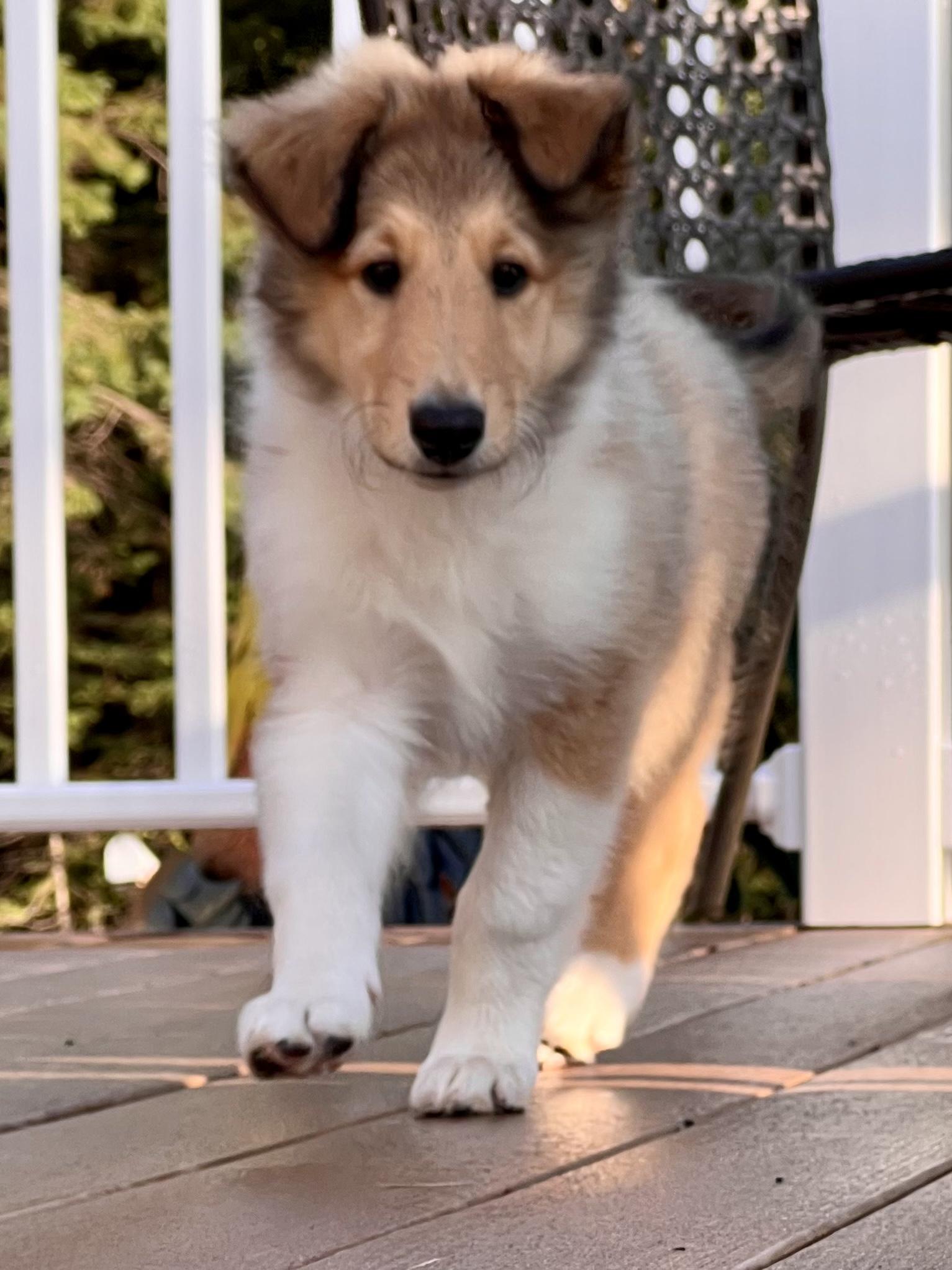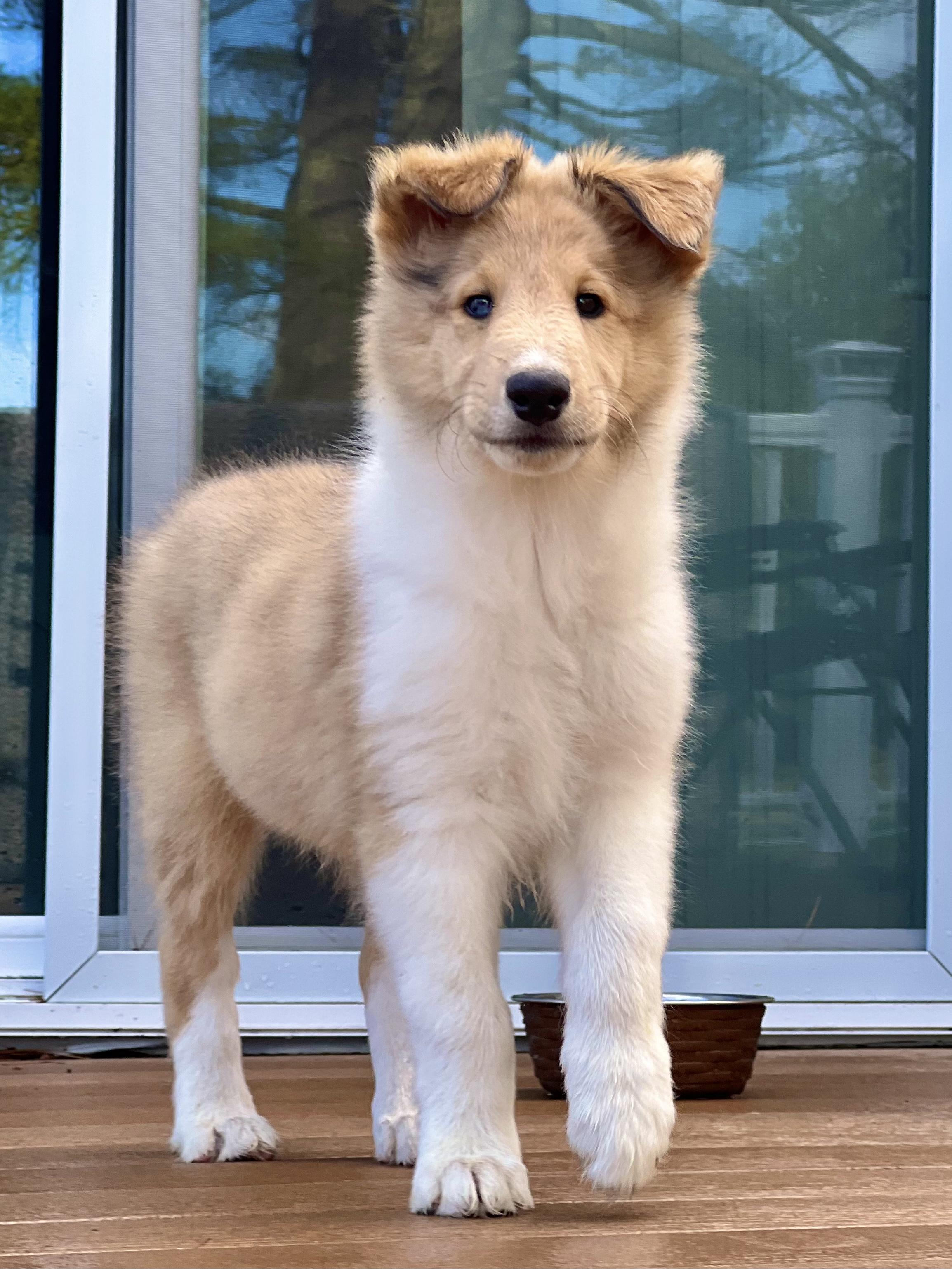 Collie puppies have rough coats. Coat types may vary depending on the parent dogs.