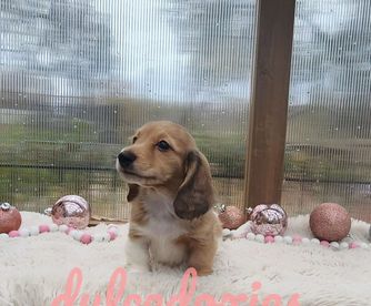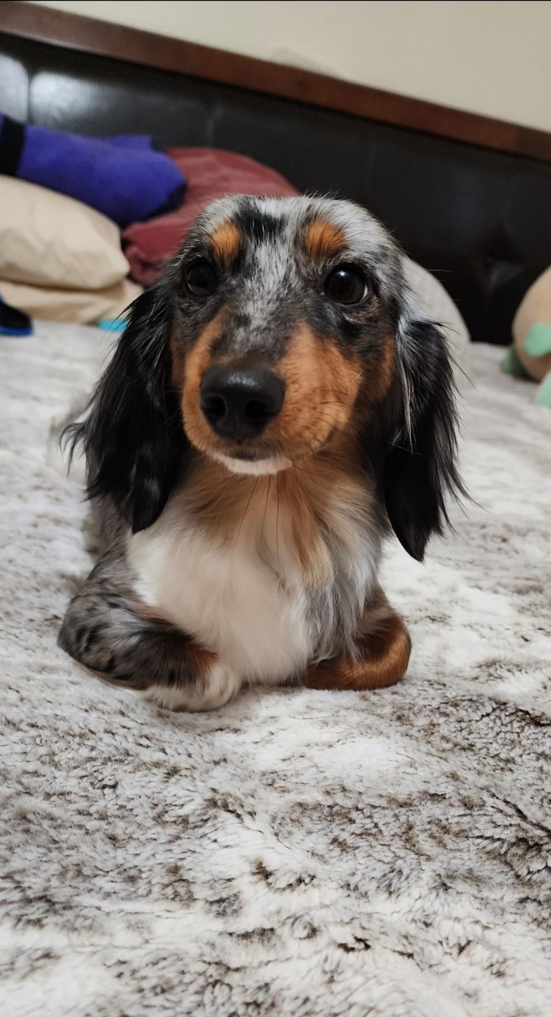 Peaches is a female Dachshund. Carefully selected as a great representative of her breed, May decided to make her part of their program. May has passed Good Dog’s screening process, which involved a review of their breeding practices, environment, and the mental and physical health of their dogs.