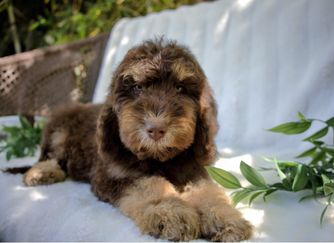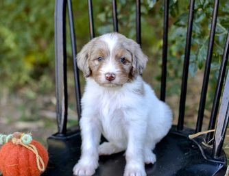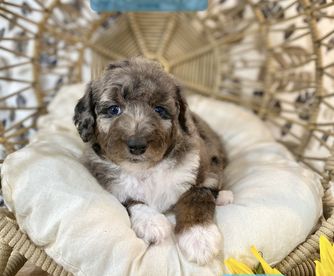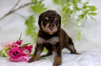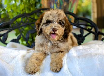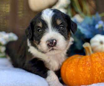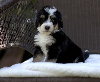 Our Bernedoodle puppies include brown, sable, black and white, tri-color, and phantom. Cavapoo puppies include apricot and red. Colors will vary depending on the parent dogs.