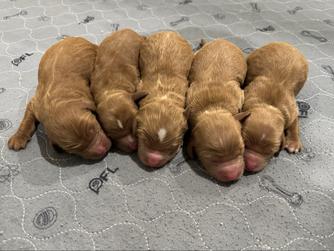 Our puppies include cream, apricot, red, chocolate, merle, and parti. Colors will vary depending on the parent dogs.