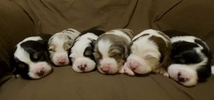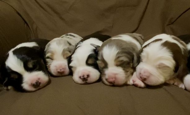 Our puppies include blue merle, black tri, red tri, and red merle. Colors will vary depending on the parent dogs.
