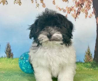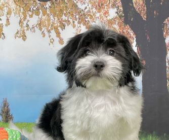 Havanese puppies include black and white, red, and chocolate. Colors will vary depending on the parent dogs.