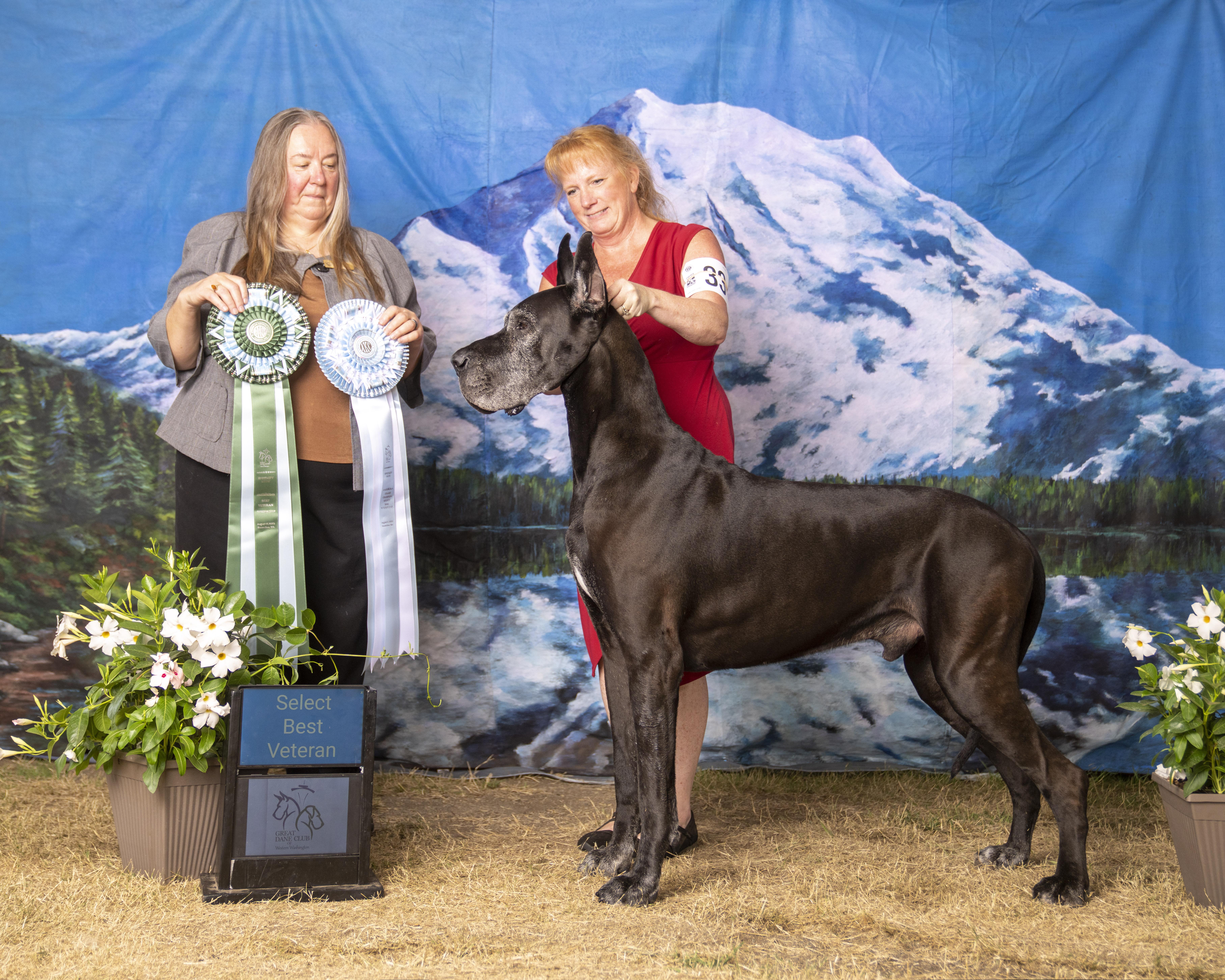 Tyreese continues to show and win at 7 1/2 years old. He is fully health tested with OFA per the GDCA Guidelines for Great Danes. He has been shown by several juniors and has an amazing temperament.