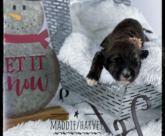Our Aussiedoodle puppies include toy, mini, and standard sizes. Sizes will vary depending on the parent dogs.