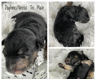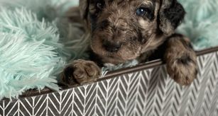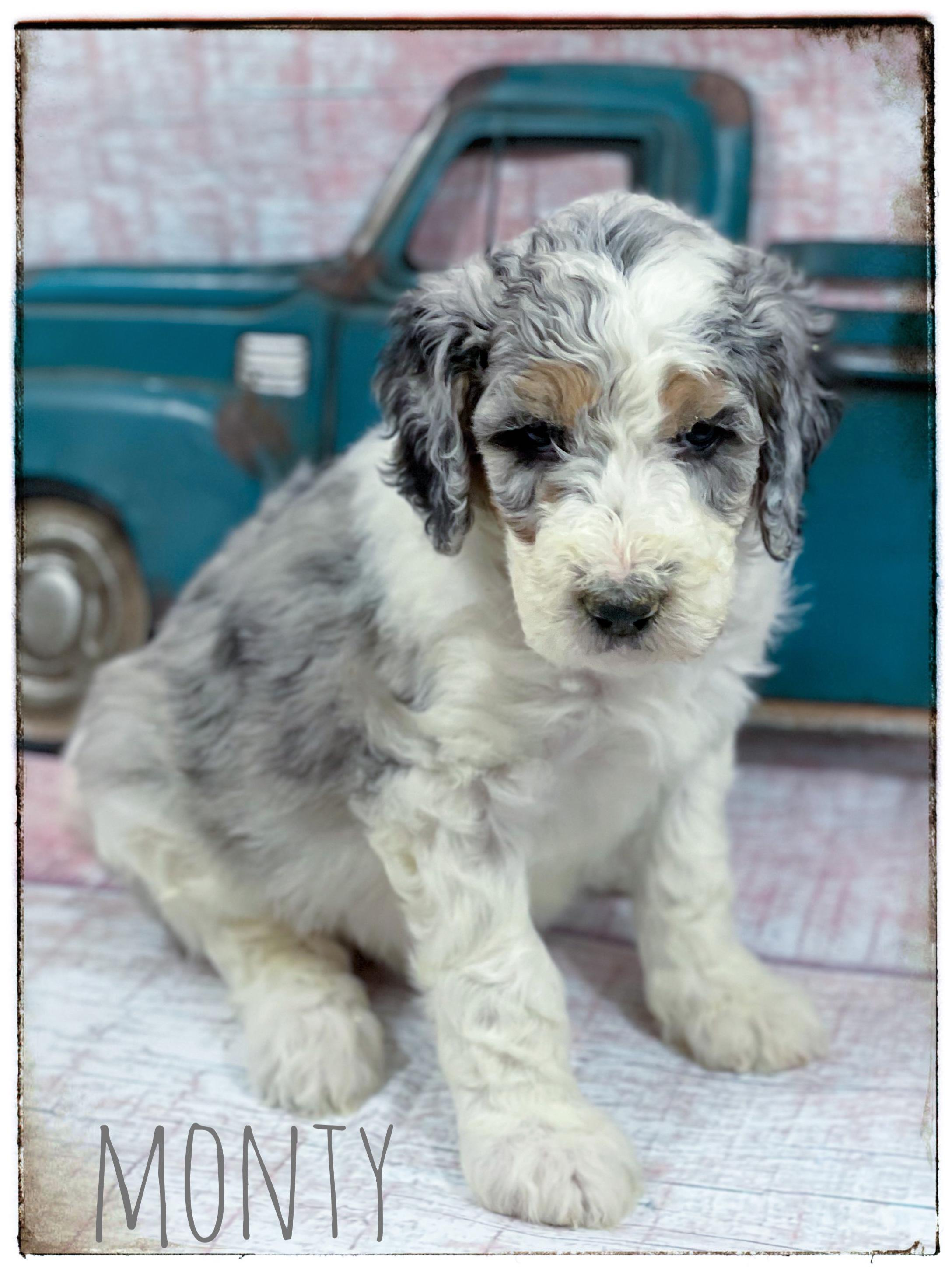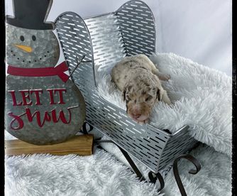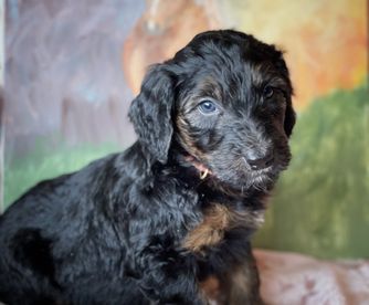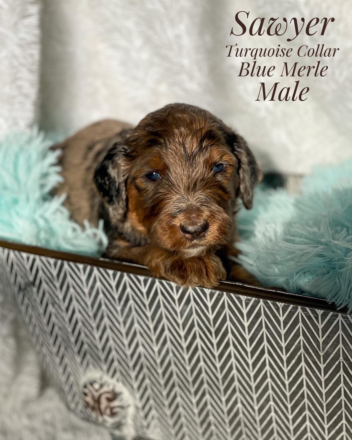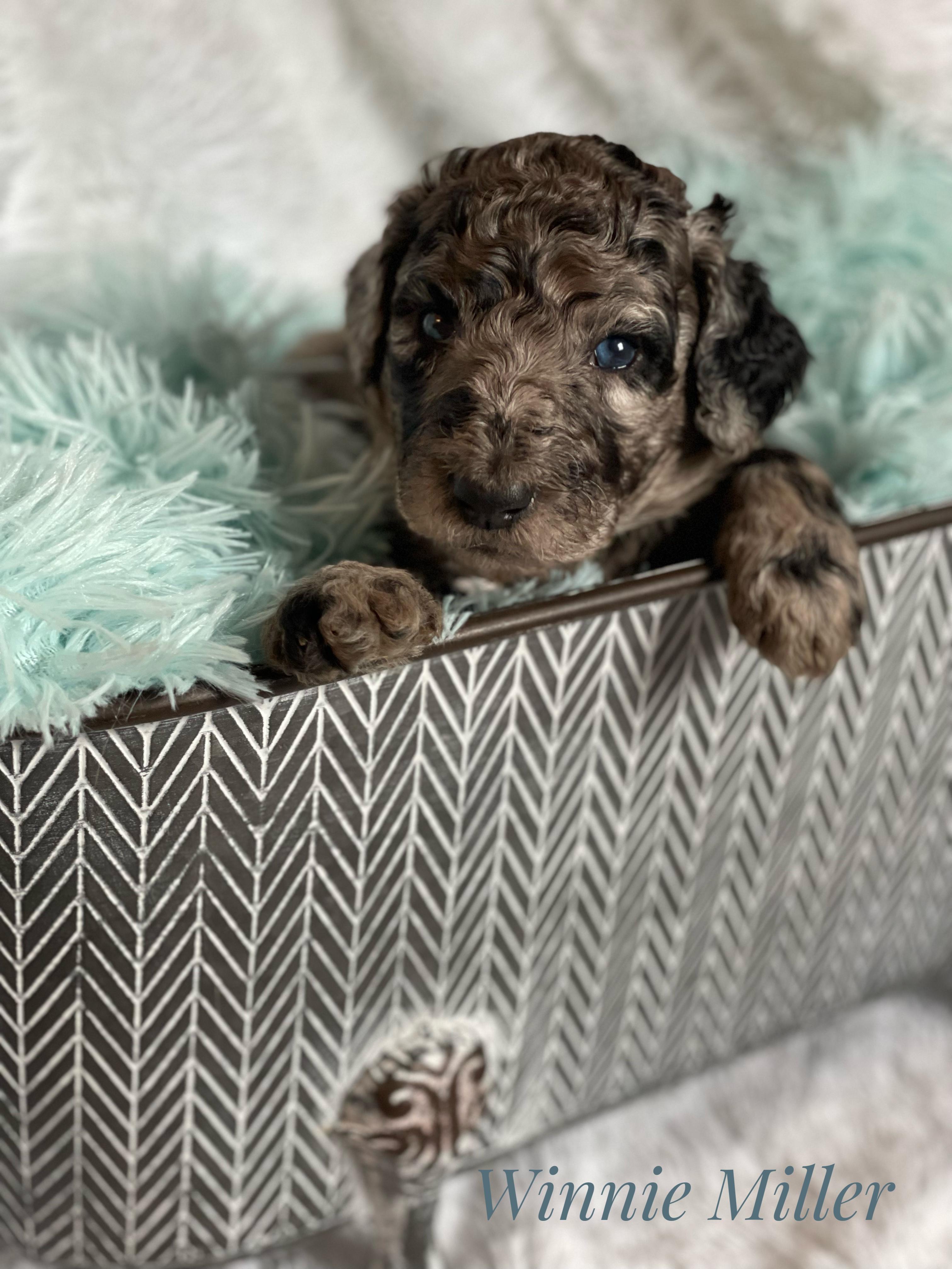 Our Aussiedoodle puppies include blue merle, red merle, black tri-color, and red tri-color. Colors will vary depending on the parent dogs.