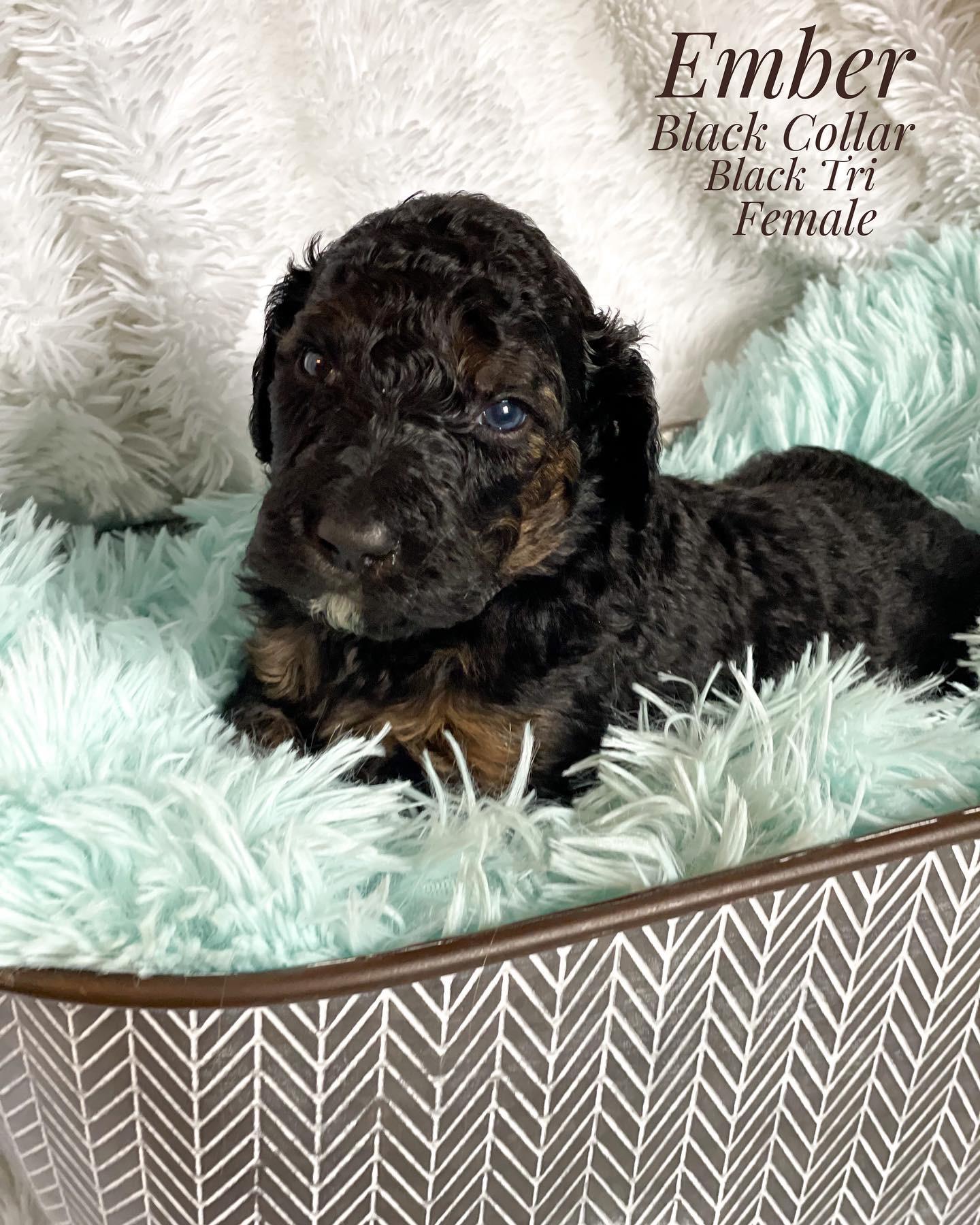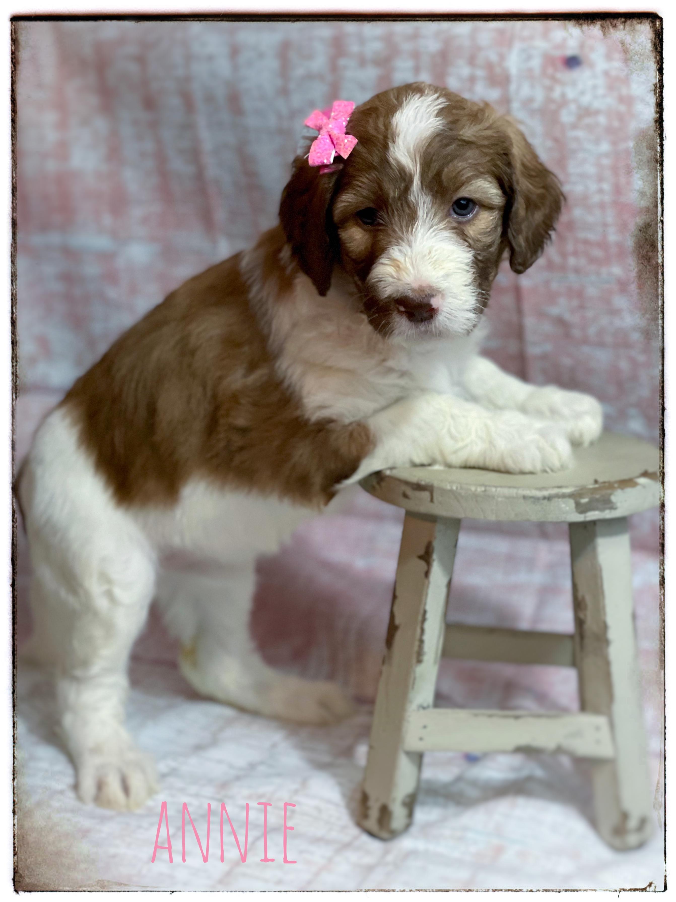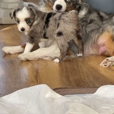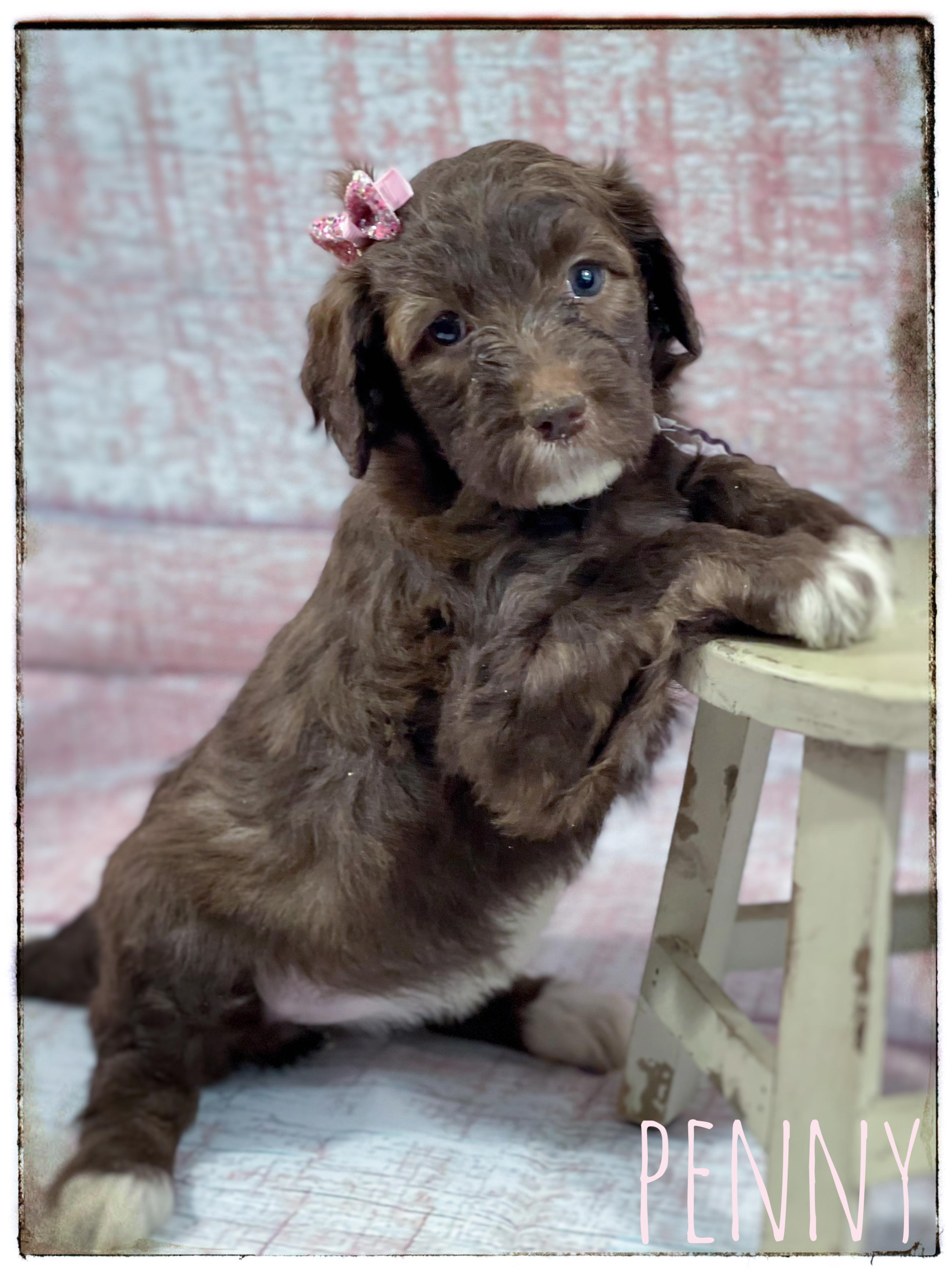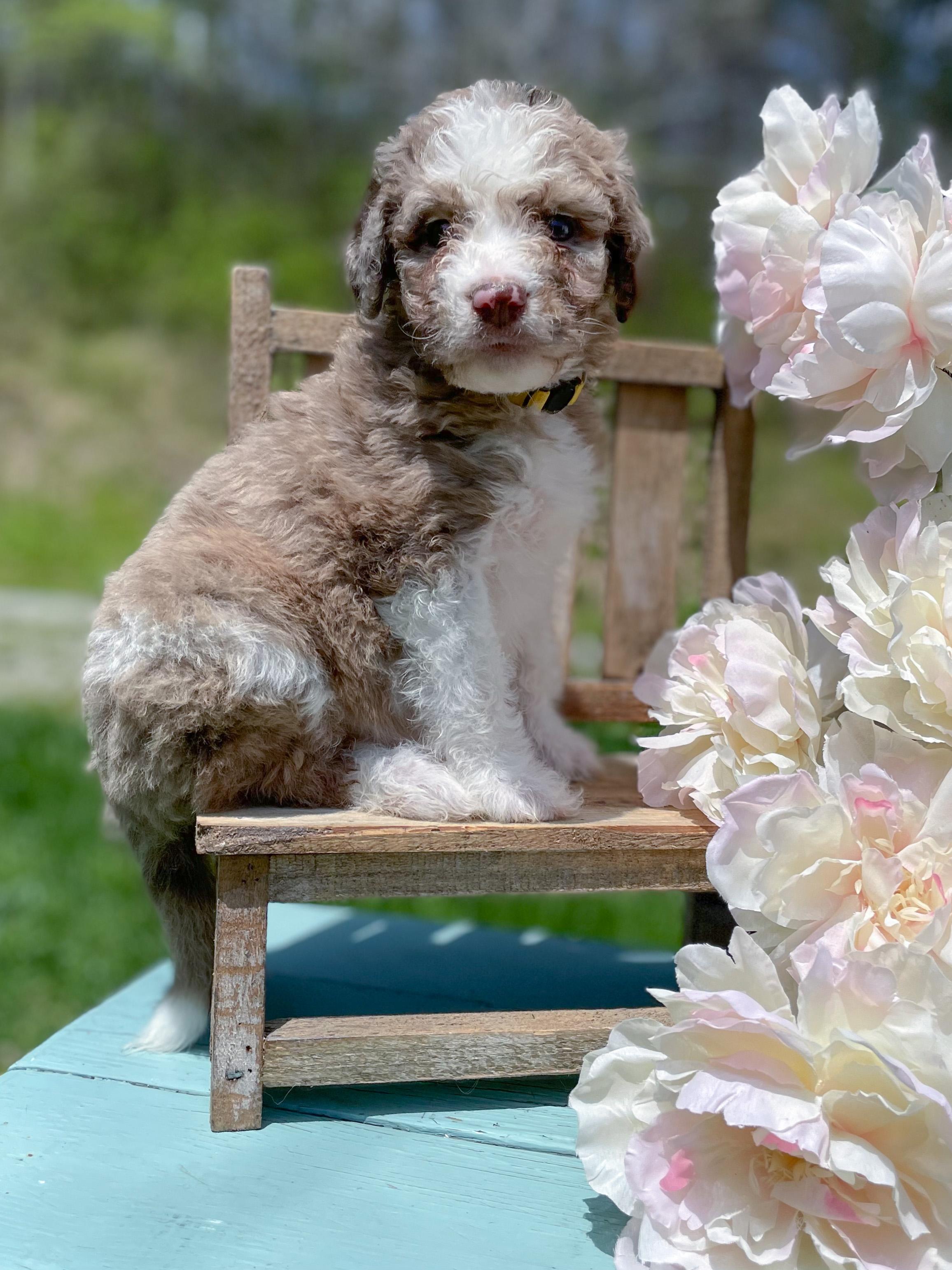 Our Aussiedoodle puppies include blue merle, red merle, black tri-color, and red tri-color. Colors will vary depending on the parent dogs.