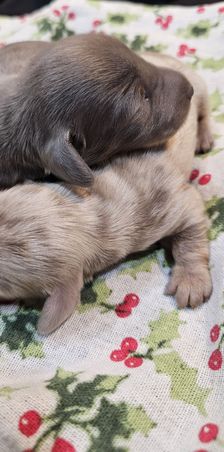 Our puppies include fawn (isabella) and tan, fawn (isabella) and cream, chocolate and tan, chocolate and cream, blue and cream, blue and tan, black and cream, black and tan, and dapple. Colors will vary depending on the parent dogs.