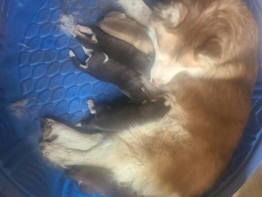 When we bought this house to remodel my son wanted a husky and we loved his qualities and decided to get a female loved her qualities and decided to breed them and it went very well so decided to continue breeding. And then add pomeranians to the mix