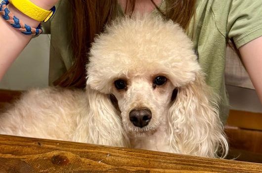 Skye is a female Poodle. Carefully selected as a great representative of her breed, Teri decided to make her part of their program. Teri has passed Good Dog’s screening process, which involved a review of their breeding practices, environment, and the mental and physical health of their dogs.