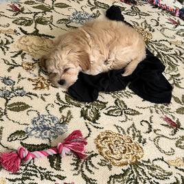 We absolutely adore our Maltipoo from Teri! From the first message inquiring Teri was so responsive and transparent about everything. We couldn’t meet in person but she gladly FaceTimed and sent picture updates throughout the 8 weeks before we picked up our little guy. We have had several puppies in the past and Link has stands out. You can tell she is attentive and nurturing in the weeks leading up to delivery including starting the potty training process, frankly our experience is that our dog is trained and only has had accidents due to us missing signals from him. No other puppy has had that done upfront. Definitely a great value add from her! Outside of that Link is just the sweetest puppy and so loving and docile overall. We just cannot say enough good things and highly recommend Teri!