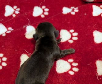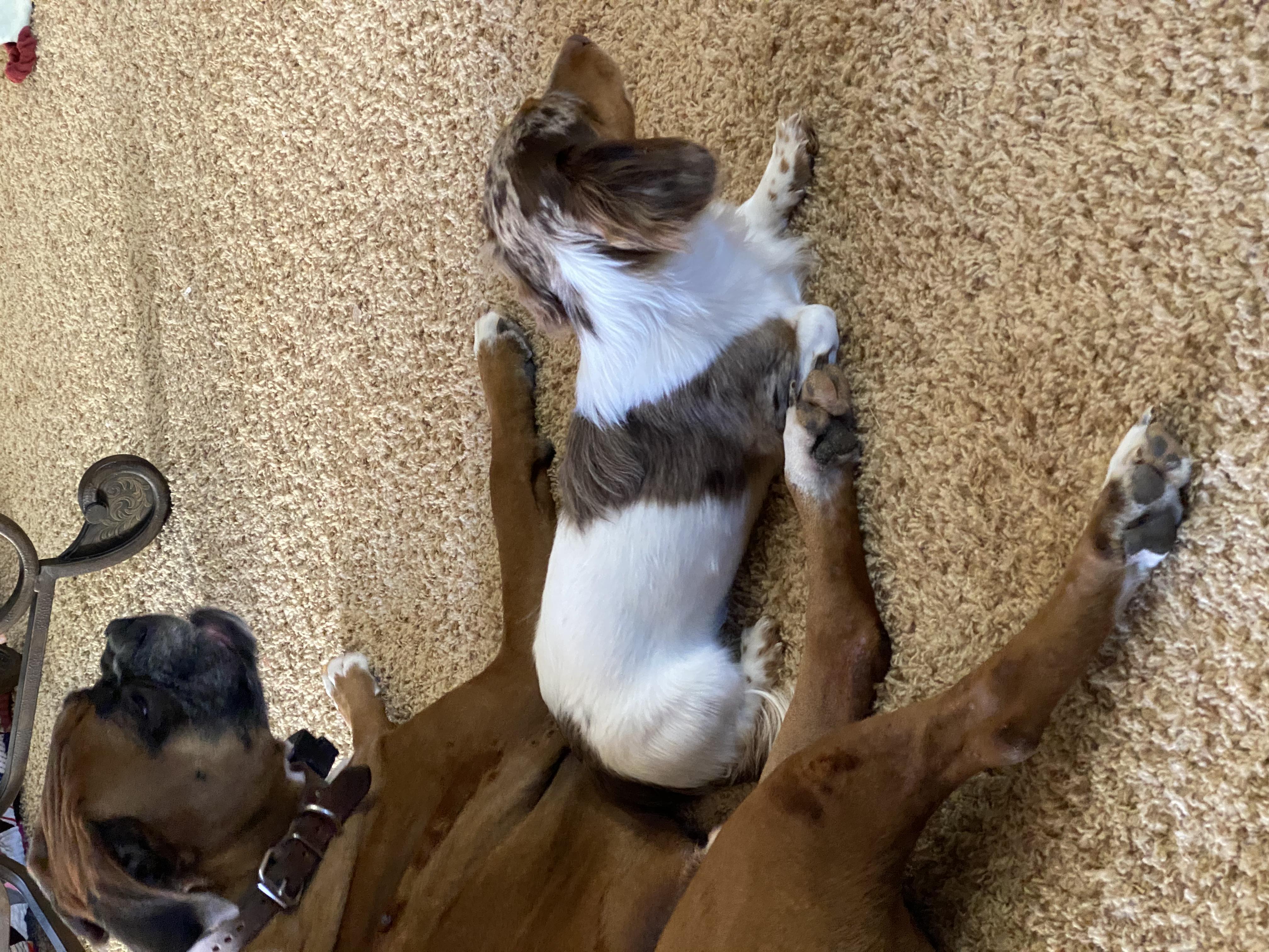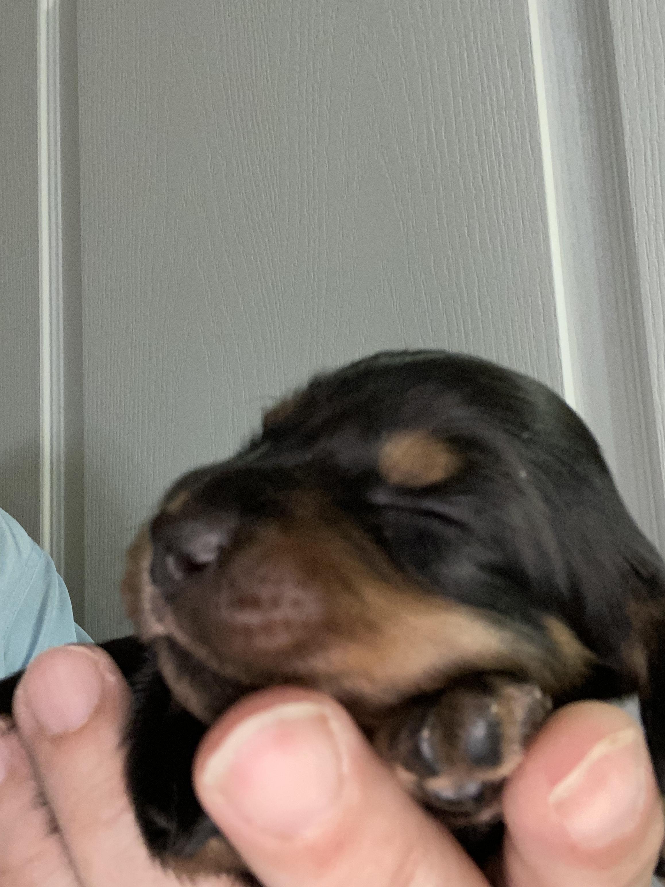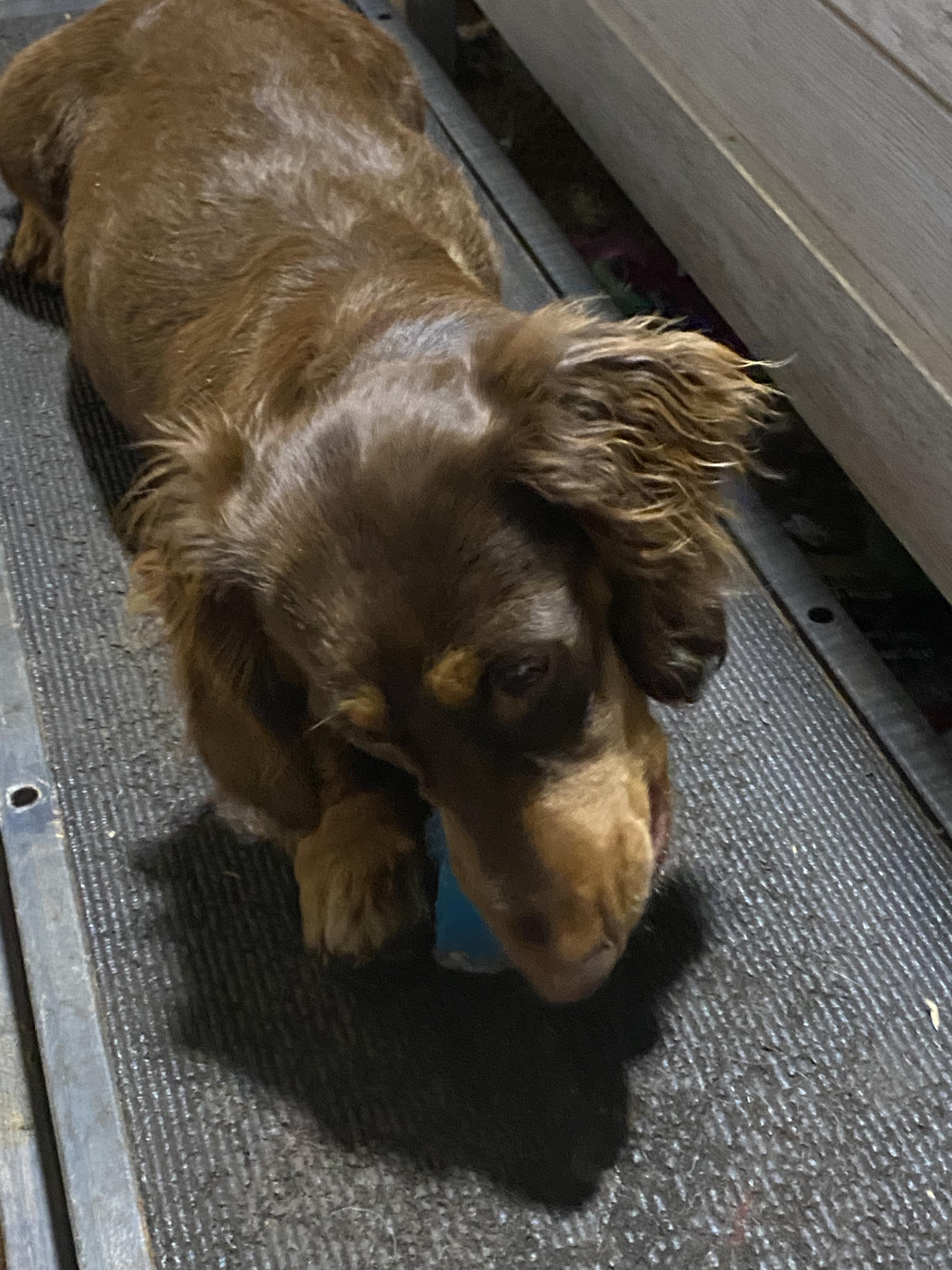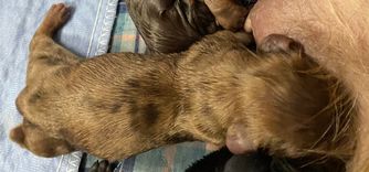 It was great to meet Julie at Dusty Road Doxies. We have been getting used to Little Nugget and our other dog, Sparky. It has taken our other dog a while getting used to Little Nugget, but today they were playing so well together. I am sure they will be best friends as the weeks go on. Thank you Julie for such a special puppy.