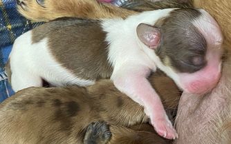 Our puppies include piebald, cream, red, brindle, chocolate and tan, black and tan, and dapple. Colors will vary depending on the parent dogs.