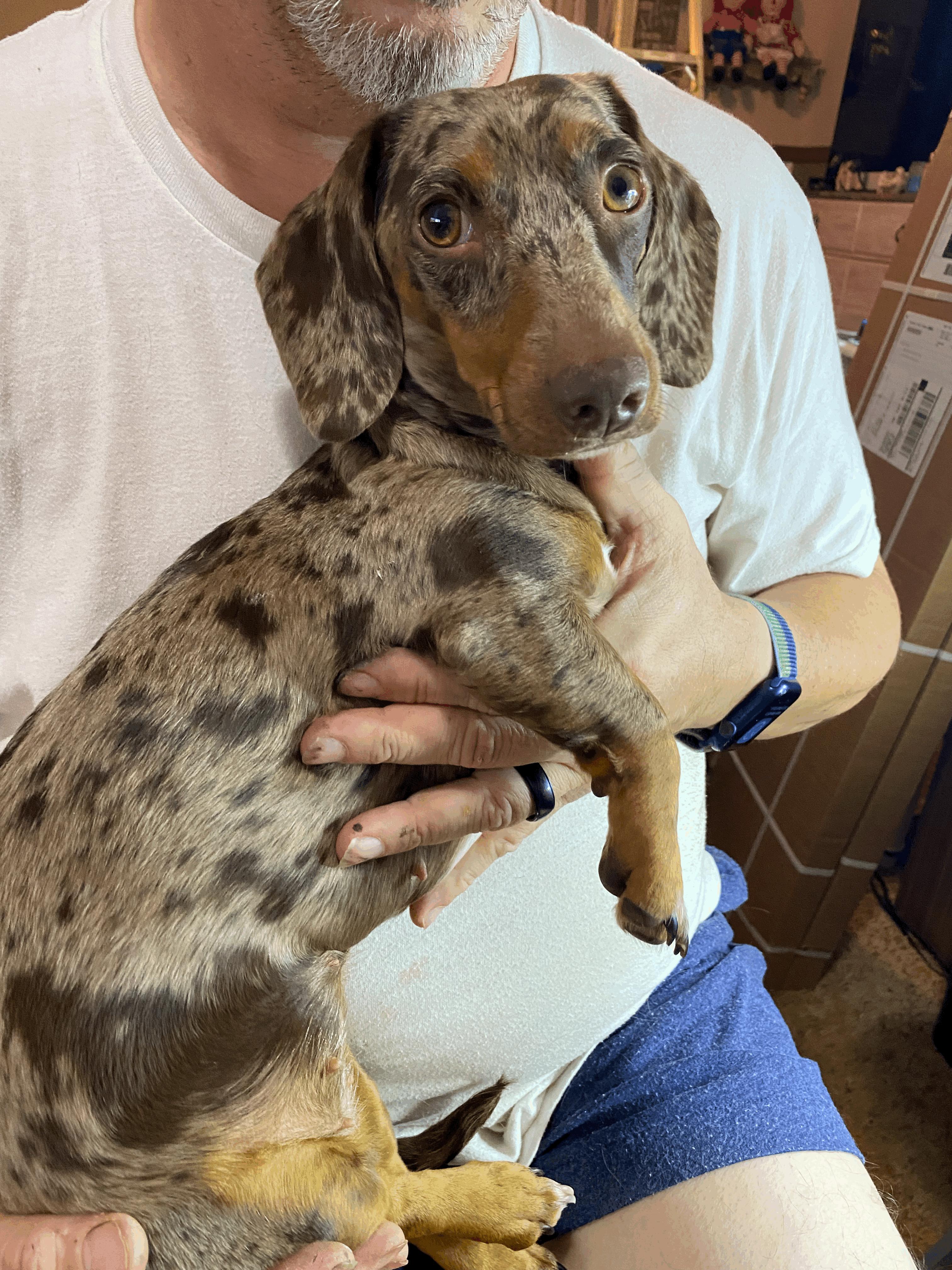 We loved working with Dusty Road Doxies! Julie and Michael were so great to answer the many questions we had regarding the pickup process, new puppy items/needs, etc. We would recommend them to anyone who asked for a reputable dachshund breeder! Thank you for providing us with our new baby Otto!