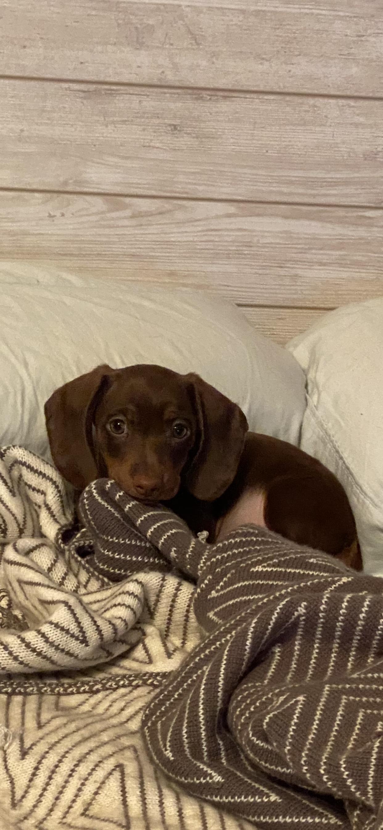 We purchased Brooke (previously named Gretel) about four months back now and have had a wonderful time with our baby pup. Dusty Road Doxies was professional, communicative, and kind the entire process. This was my first time using Good Dog and they helped every step of the way be as easy as possible. We were incredibly happy with all the information given to us about our pup before and at pick up, and Brooke came home ready to be loved which shows they did an excellent job taking care of her. We would absolutely come back to Dusty Road if Brooke ever decided she needed a sibling!
