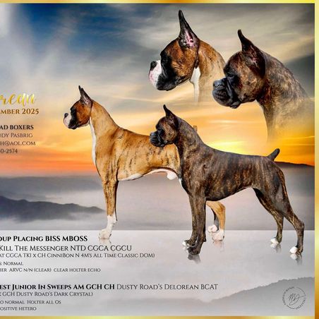 I'm the breeder behind Dusty Road’s Kennel LLC located in Peyton, CO. We have 40 acres of ranch land for our boxer babies to romp on. We have a very limited breeding program and breed for quality, not quantity. With limited breeding, we have produced over 15 homebred champions. We strive to produce a healthy boxer as well as a beautiful one. Our breeding animals are health-tested for heart disease with echocardiograms and holter monitors yearly. We also screen for Degenerative Myelopathy. We professionally handle all breeds of show dogs and have a beautiful kennel for our clients when they come to "Boxer Camp".