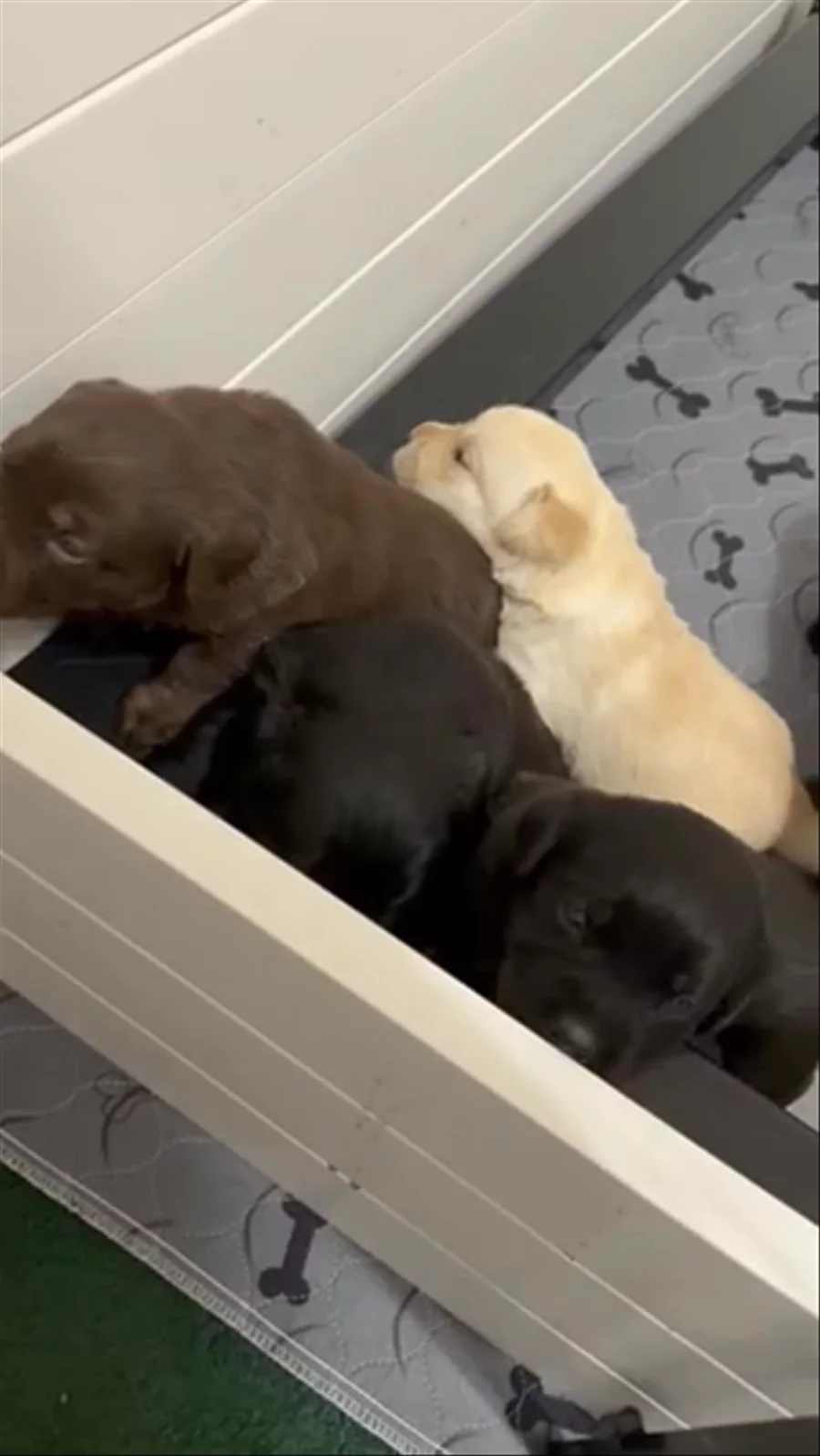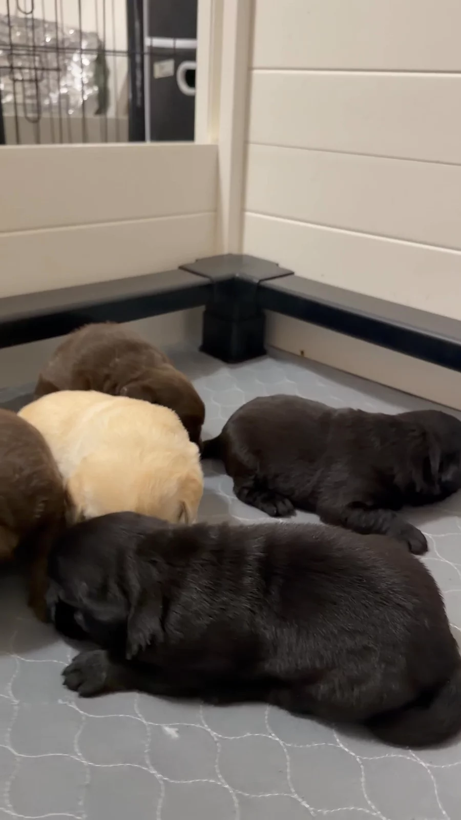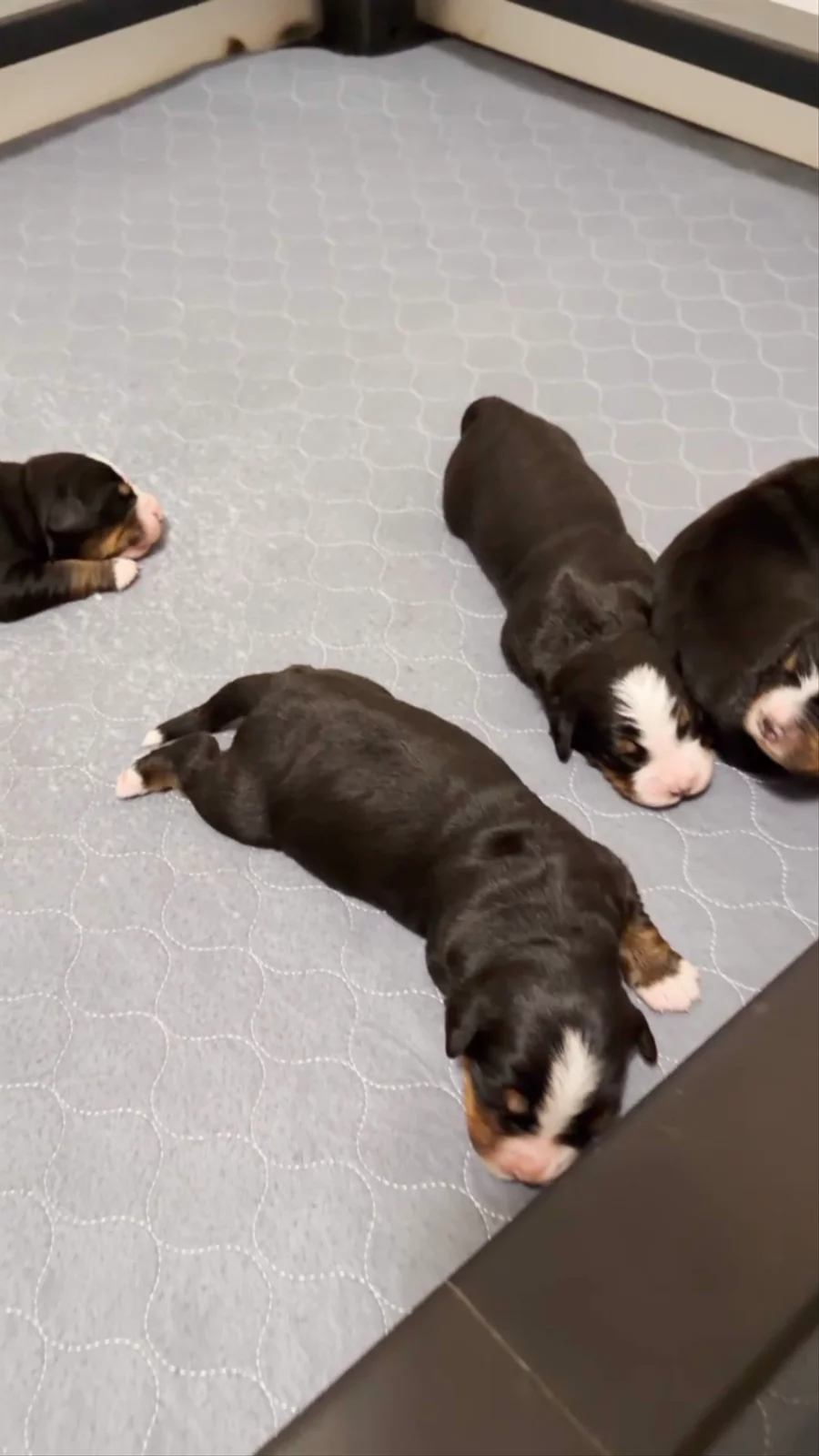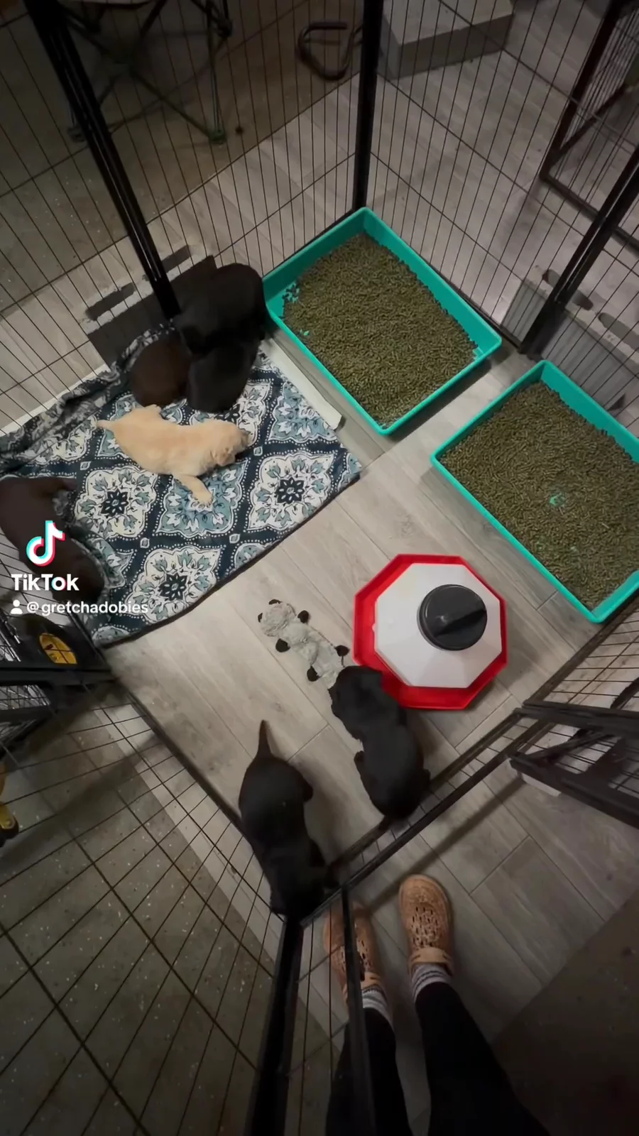 5 weeks and mom weaning them means a bigger play area for the puppies!