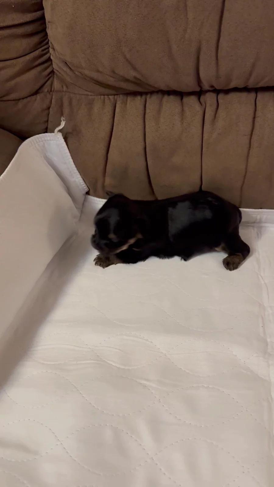 Puppies now have their eyes open and they’re trying to walk around. And they’re starting to play with each other.