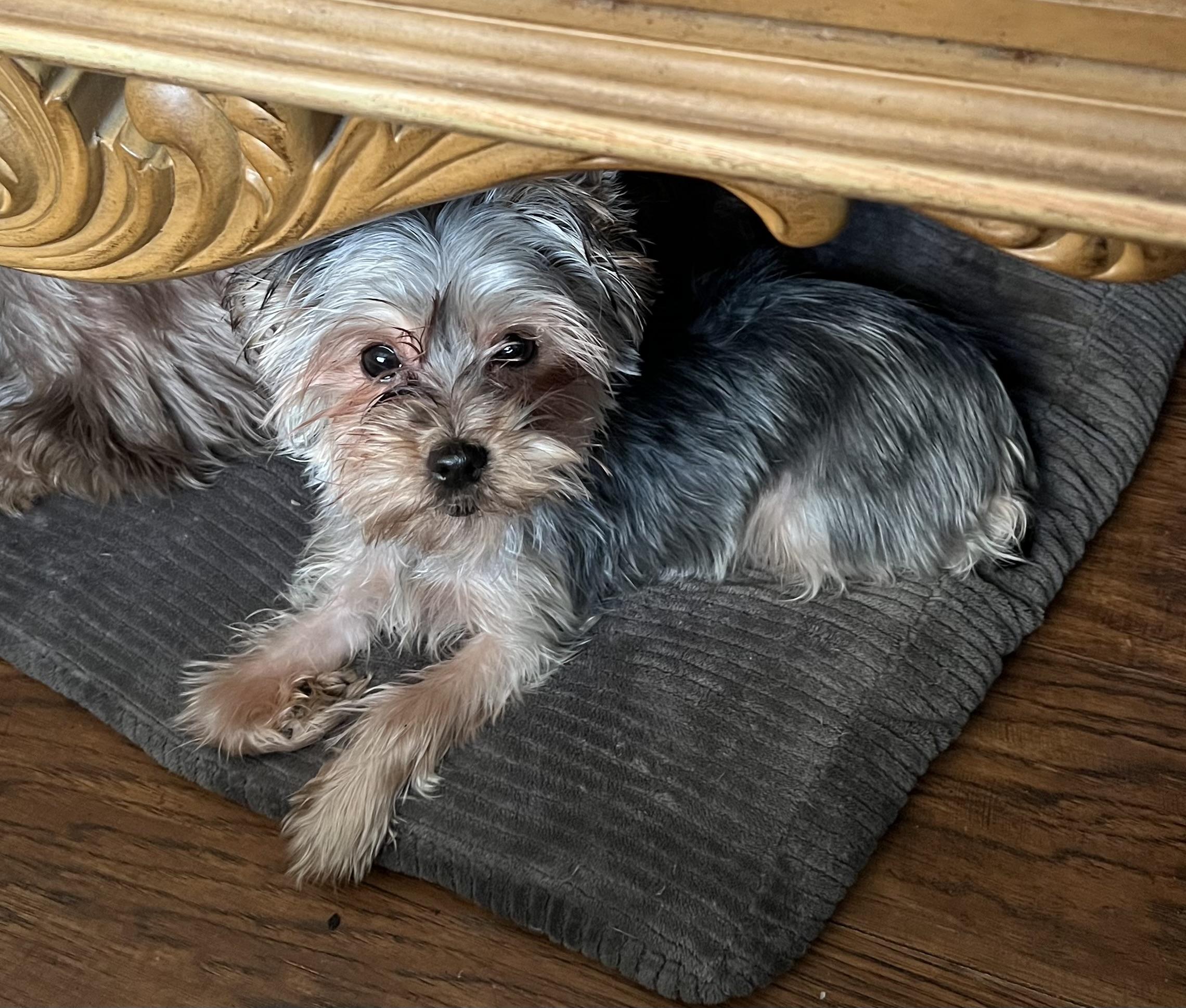 Lexi is gentle natured and is half Yorkie and half Shih-Tzu mix.