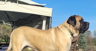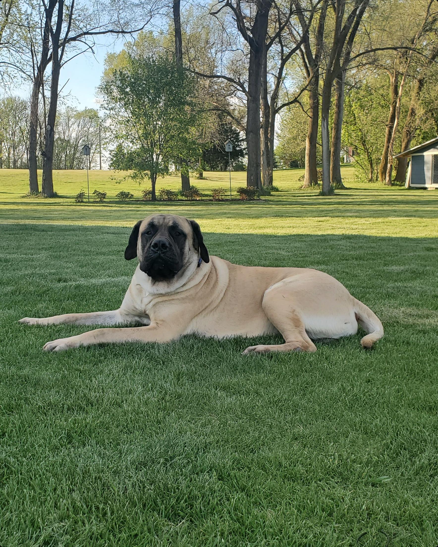Lady is a female Mastiff. Carefully selected as a great representative of her breed, Alison decided to make her part of their program. Alison has passed Good Dog’s screening process, which involved a review of their breeding practices, environment, and the mental and physical health of their dogs.
