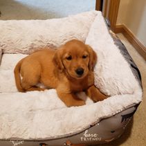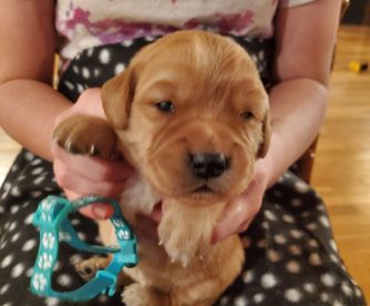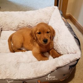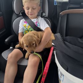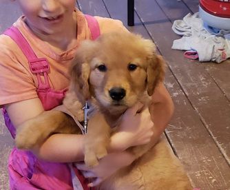 Elizabeth was great to work with! She was super responsive and answered all of our (many) questions. She was flexible with picking up our girl, Phoebe, and met us at a convenient location. She had all the paper work ready and a super cute goody bag to send home with us. Phoebe is settling in nicely - she already goes potty quickly and is learning to go outside, she seems to have a great temperament with the kids and is already picking up on training commands! We're so happy we chose Elizabeth and Eagle Ridge Golden Retrievers to add 4 paws to our family!