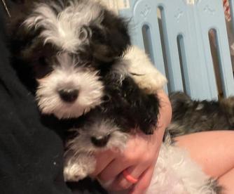 Our Dutch Shepherd puppies include gold brindle and silver brindle. Coton de Tulear puppies include tri-color, black and white, white, and black. Colors will vary depending on the parent dogs.