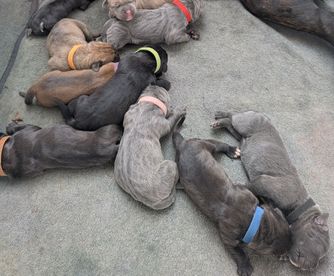 We are thrilled to introduce our exceptional litter of almost 6 week old Cane Corso puppies!