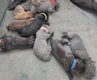 This litter is a stunning tapestry of traditional Cane Corso beauty. We are so excited about the rich, classic colors emerging!