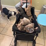 Prada is gentle, well mannered and calm . She is the sweetest dog. She loves other dogs and cats . She is wonderful with children. She is the best mother to her puppies. She is the granddaughter of OG China Boy ! She has an amazing bloodline. She is 14 1/2 inches tall . She is considered a pocket bully . She is one of the best dogs we have ever had . Her temperature is unprecedented. She gets along with small dogs big dogs and cats . She is afraid of chickens and will run lol . This is her first litter and will be her last litter. She is such a good mother to her pups but we are one and done . I know her puppies are going to grow into amazing dogs like her .