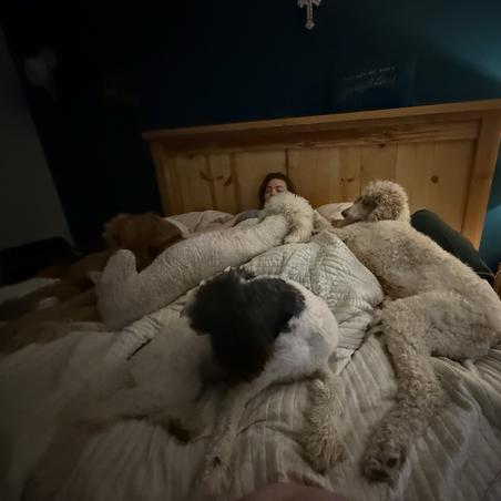 I'm Ashley E., the breeder behind East Bunch Poodles located in Vidor, TX. Specializing in Standard Poodles, we take great pride in breeding healthy, well-adjusted, and loving pups who are as much a part of our lives as our own children. Our four poodles, Tequila, Whiskey, Winston, and Copper are the heart and soul of our family. They’re not just pets—they’re companions.