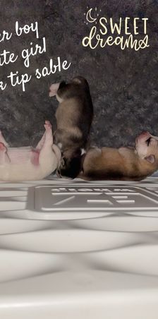 Our puppies include gray and white, wolf sable, silver, lavender, blue, white, black and white, and red and white. Colors will vary depending on the parent dogs.