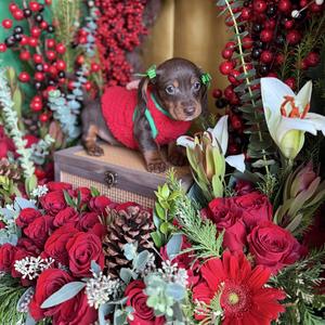 Working with Gustavo at East Mini Dachshunds was seamless and stress-free. We received weekly photo updates and progress reports, which made the wait exciting and reassuring. Go-home day was easy, and little Raven came home in a sweater with a goodie bag, food, a blanket, and all vet documentation.