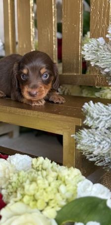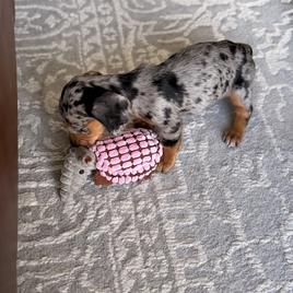 She’s such a sweet and loving little Doxy would probably go home with anybody. She’s always happy go lucky wagging her tail she has CKC registered.