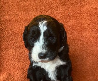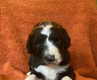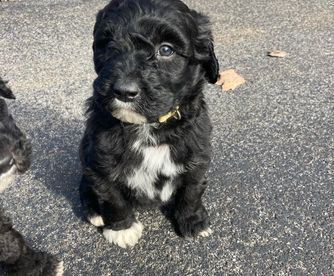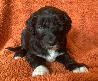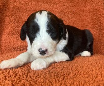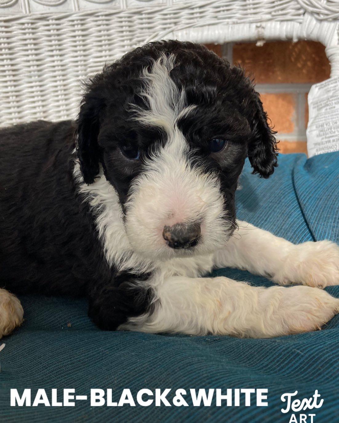 Our puppies include black and white and black. Colors will vary depending on the parent dogs.