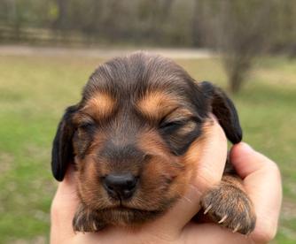 I'm Kaci H., the breeder behind East Texas Dachshunds located in Troup, TX. We do our best to socialize and acclimate each litter so we’re able to offer all-around healthy and well-mannered puppies! We focus on the proper development of all our puppies because we know that each one is unique and deserving of undivided love and attention. Each puppy is bred, raised, and loved indoors to ensure health, happiness, and harmony at the start of its life. With our pups, beauty is a given, but producing healthy, loving, and versatile dogs is our true goal. Our puppies spend time around larger dogs, cats, and children prior to going home.