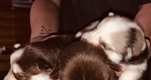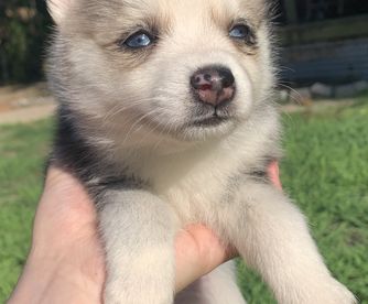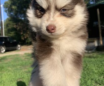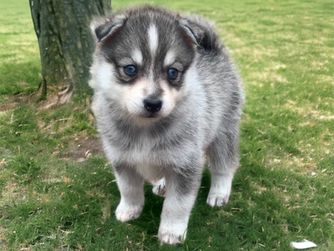 We decided to get a family dog after me and my husband got married so we found our Pomsky Mogley. He is the best family dog and my children adore him! We were looking for another Pomsky to add to our family and realized they are very difficult to find. So when we finally found our perfect matches we decided we need to breed them to share this awesome breed of dogs!