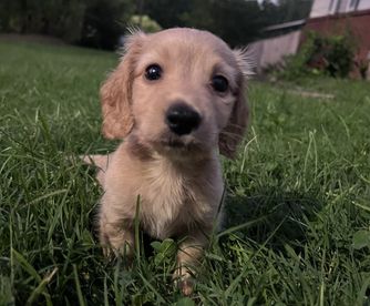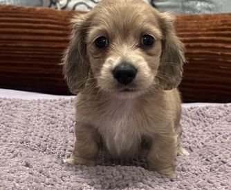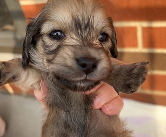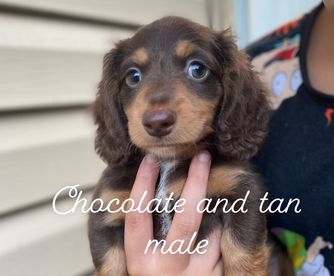 Dachshund puppies include wirehaired, smooth, and longhaired coat varieties. Coat types may vary depending on the parent dogs.