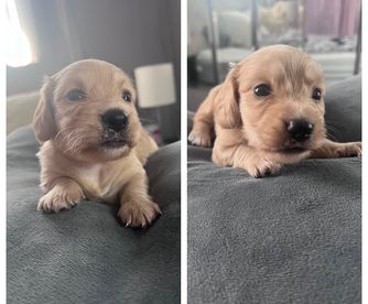 Dachshund puppies are miniature size. Sizes will vary depending on the parent dogs.