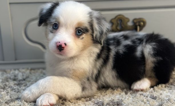 Our Miniature Australian Shepherd puppies are miniature size. Sizes will vary depending on the parent dogs.
