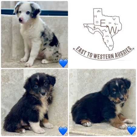 I'm Natalie W., the breeder behind East to Western Aussies located in Baker, FL. Small Breeder of Mini Aussies/MAS registered with ASDR and AKC. Our Sire and Dams are full panel clear via Canine HealthCheck. All of our puppies are raised in our home, on our farm. The puppies are stimulated for mental acuity; diverse animal socialization; and human companionship.