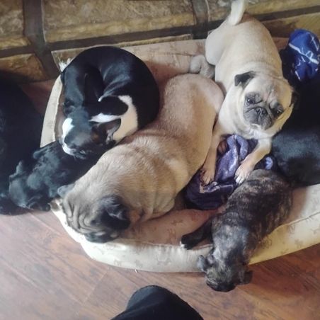 My aunt bred Pugs for years before she died when I was a child. My grandfather bred hunting dogs as well as horses, cows, and a variety of other farm animals. I understood at a young age what it was to help the breed be the best it could be. So I decided to breed Pugs to ensure their health and temperament. I also breed Buggs, Pug/Boston Terrier crosses. As well as Boston Terriers.
