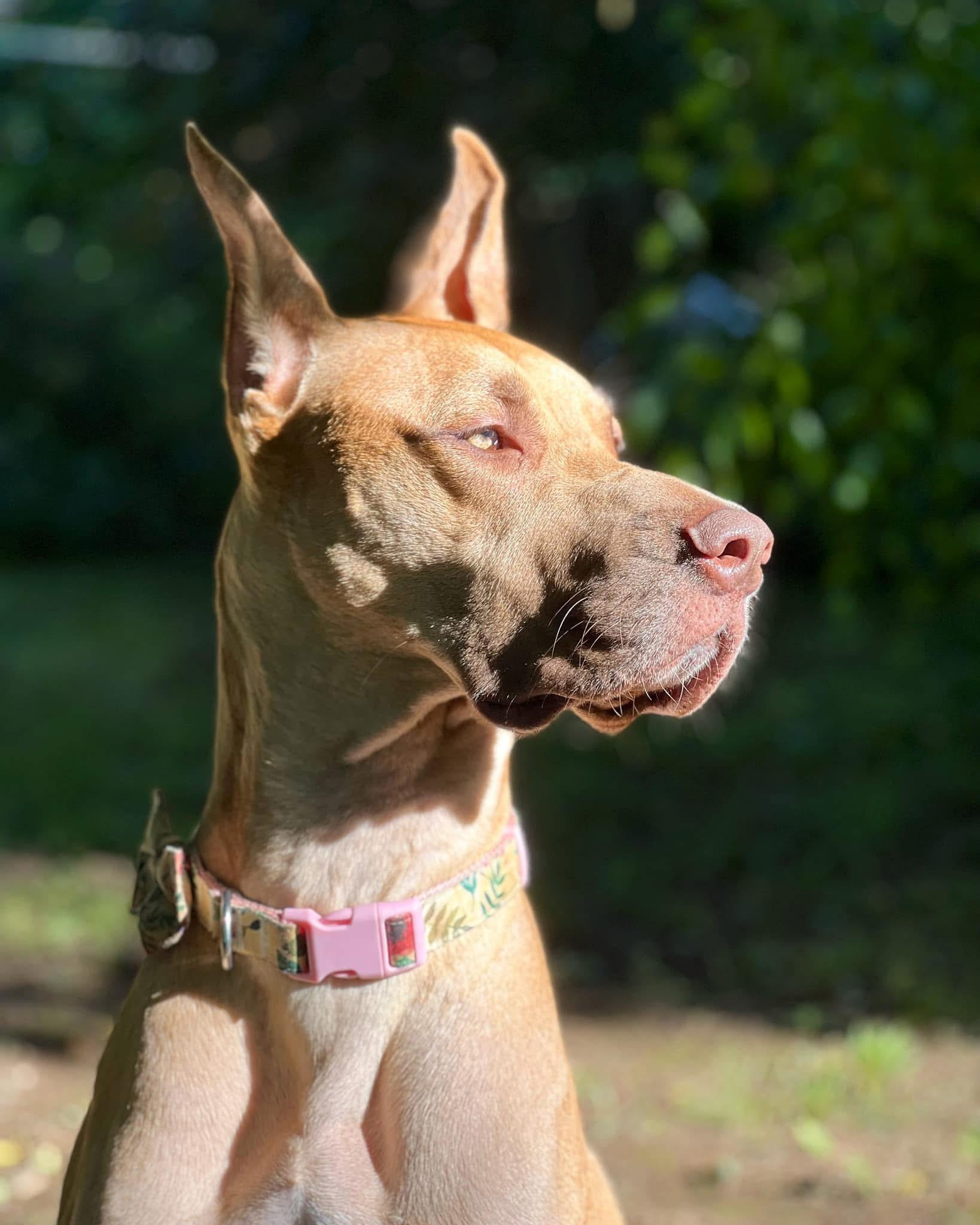 Áine (Awn-ya) is a chocolate fawn girl who carries blue, harlequin, tan point, and double masking. She is intuitive, athletic, intelligent, and a perfect overall family dog. Áine has a great PennHip score, and has passed her OFA eyes and congenital cardiac. Áine has many great qualities that make her our foundation female.
