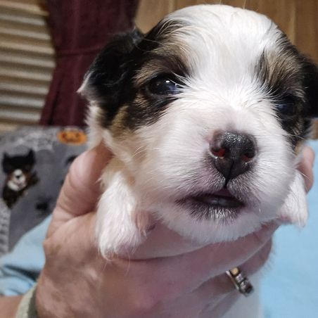 Kimberly was so responsive and knowledgeable about the breed. You can tell she really cares about her dogs! Lovely person. Showed us the puppy’s parents. The puppy was actually for my mom and here is some of what she had to say: The puppy eats very well. He is one of the smartest puppies I have ever had. Listens to commands at 8 weeks, can go up and down stairs already. Walks with a harness. Is sweet and funny to watch. Plays well with my 4 year old papillon. No health issues and making progress in paper training. He is an absolute delight, and everyone loves him. He returns the love indeed!