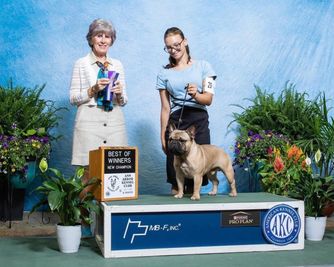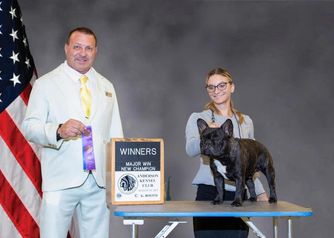 We are French Bulldog Club of Georgia members who protect, promote, and preserve the high standards set forth by the AKC and FCI French Bulldog breed standards. We participate in canine health research, are in good standing, and participate in the AKC and FCI sport of Conformation. We breed mainly to better our program to present in these events. The official term for dog shows, Conformation events, evaluate dogs by how closely they resemble their breed’s standard.
